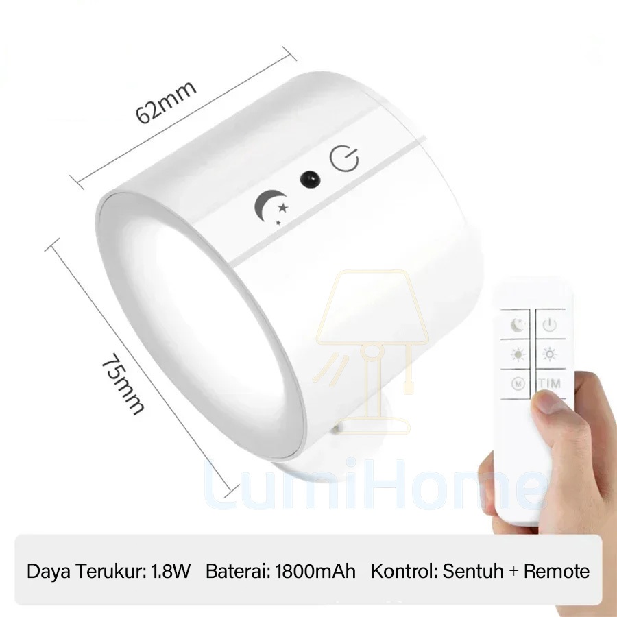 LumiHome Lampu Dinding Sensor Gerak dengan Remote Control 3 Warna LED Nirkabel Indoor Up & Down Baterai Isi Ulang 5000mAh Kecerahan Dapat Diatur