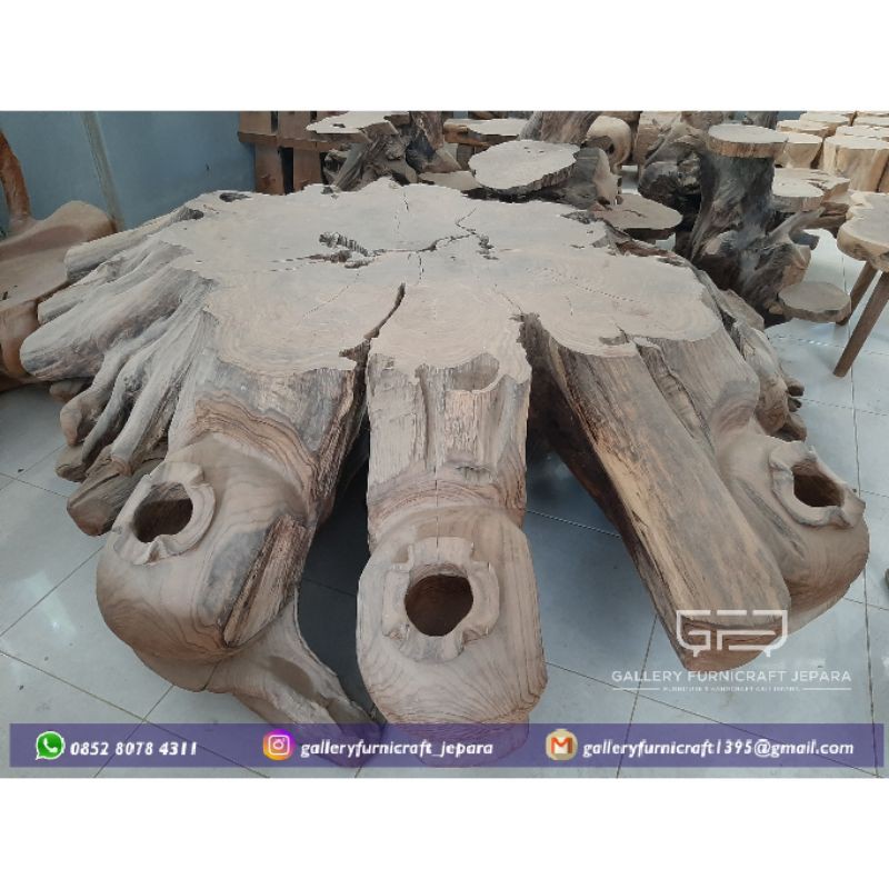 Meja Bulat Sonokeling Solid Kayu Pendem