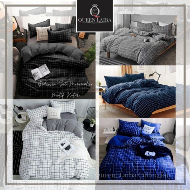 Bedcover Set Minimalise Aesthetic Termurah Motif Kotak - Single 120x200 Queen 160x200