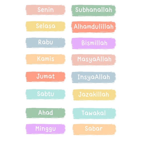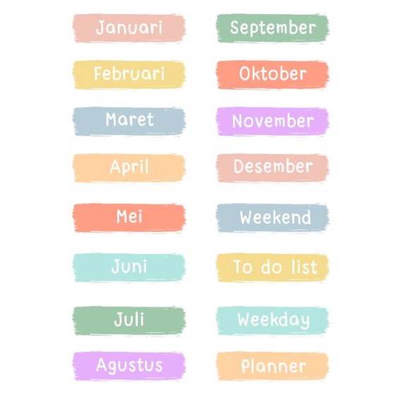 Sticker nama-nama hari/bulan/kalender