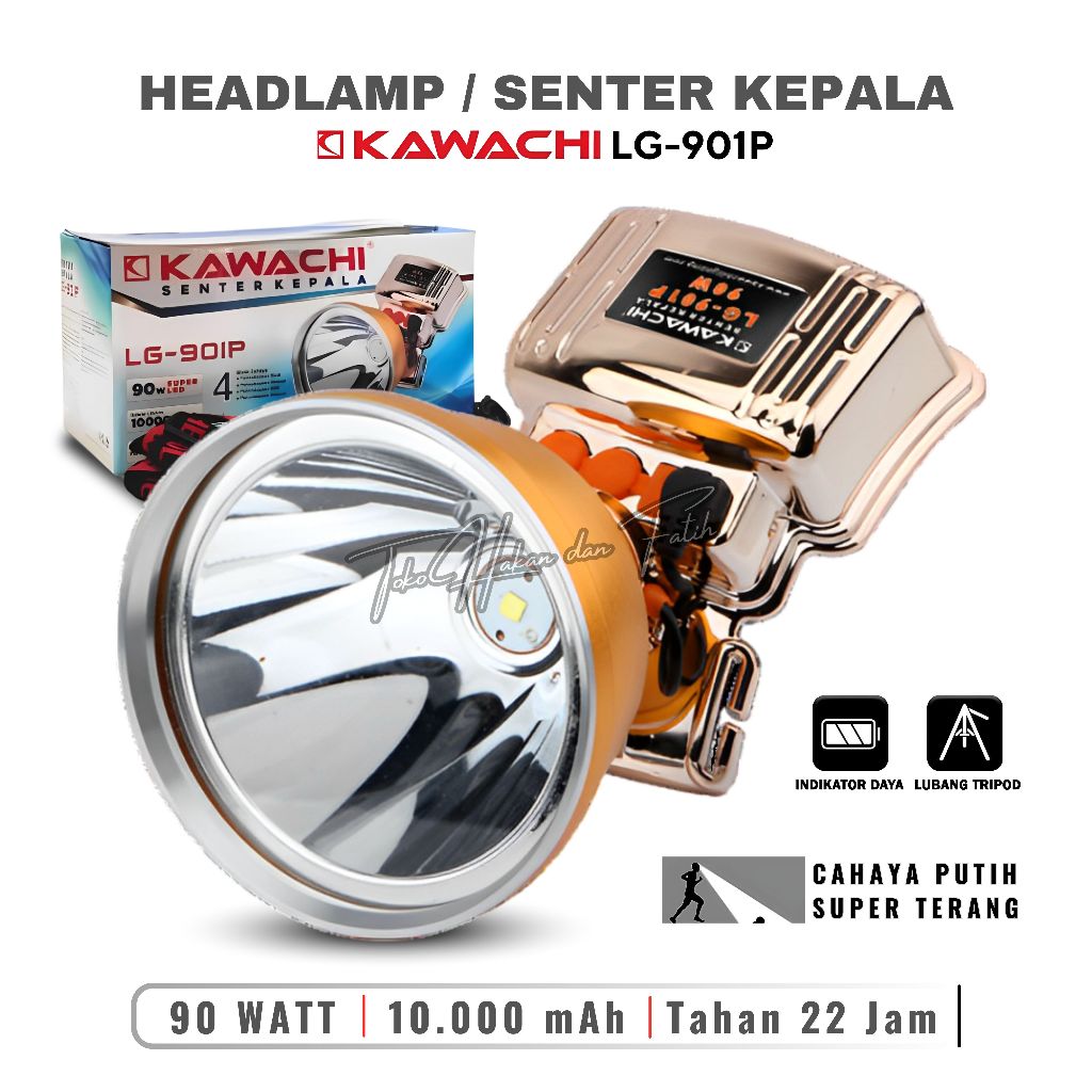 Kawachi Senter Kepala Jumbo 90w 90 Watt Super LED Super Terang LG-901P Waterproof Lithium Cas Recas Rechargeable Isi Ulang Tahan Lama 22 Jam 10000 mAh - Kawachi Senter Kepala 90w Super LED Super Terang LG 901 P~THF