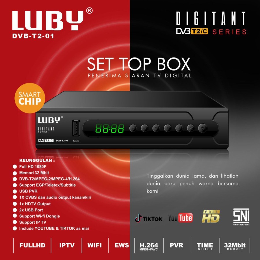 Set Topbox Tv Digital Luby DVB -T2-01 / EVERCOSS DVB-T2-01 / SUPER HD 168 GOL set topbox tv analog ke digital / set topbox tv digital untuk tv tabung / stb tv digital murah / set box tv digital murah / set box tv digital / set top box tv Bisa Youtube~THF
