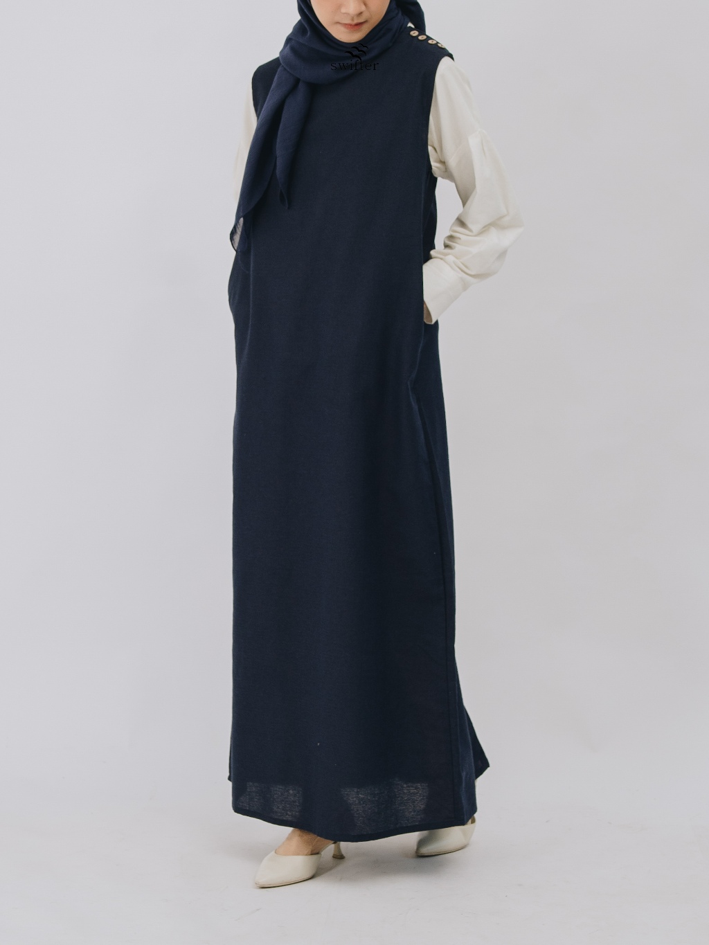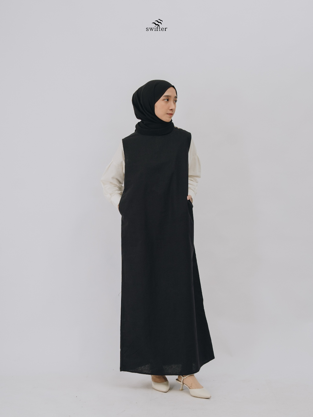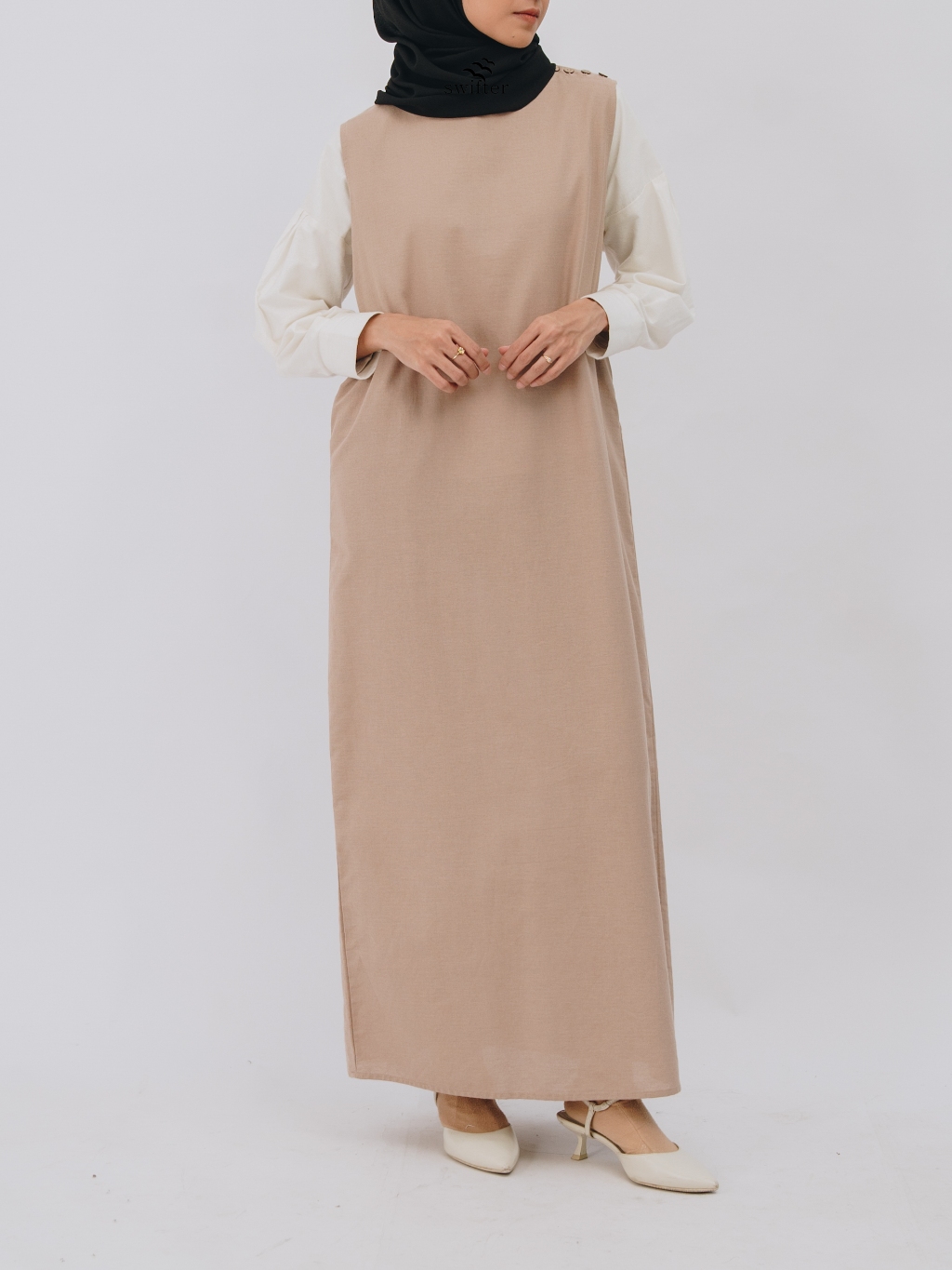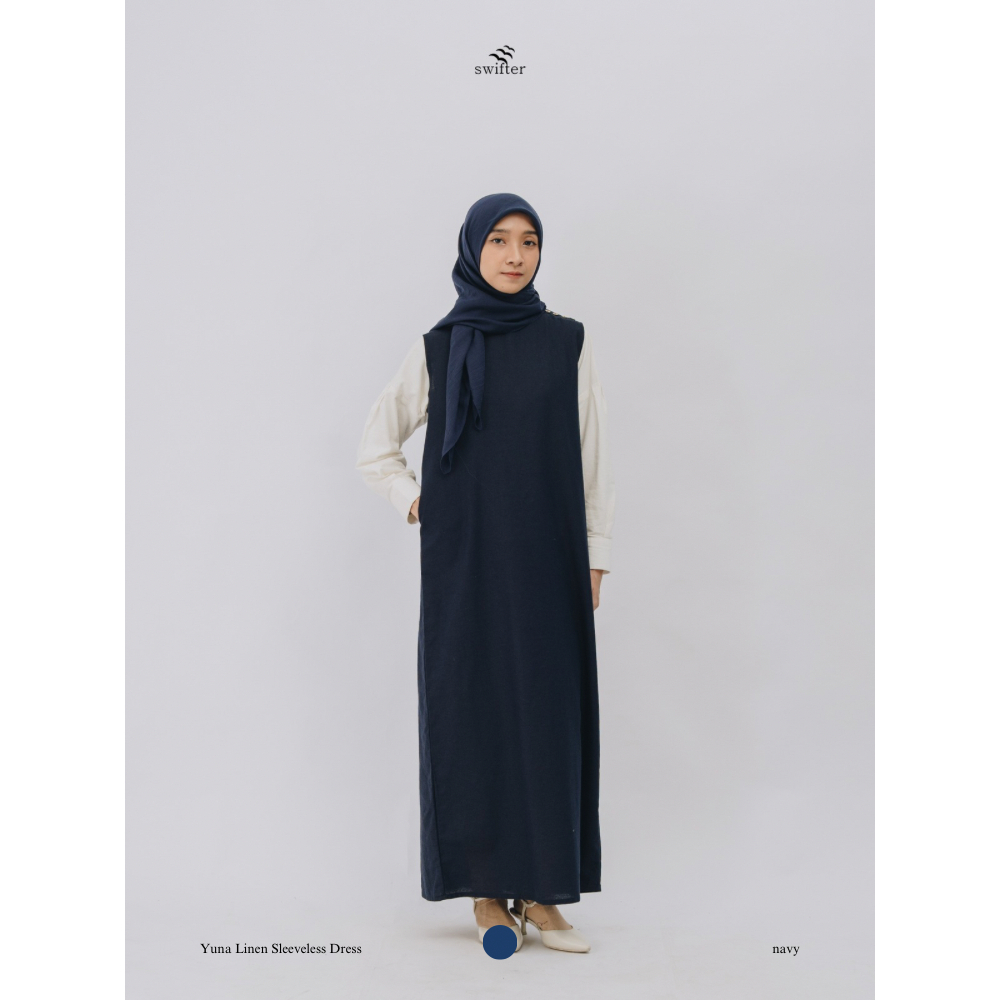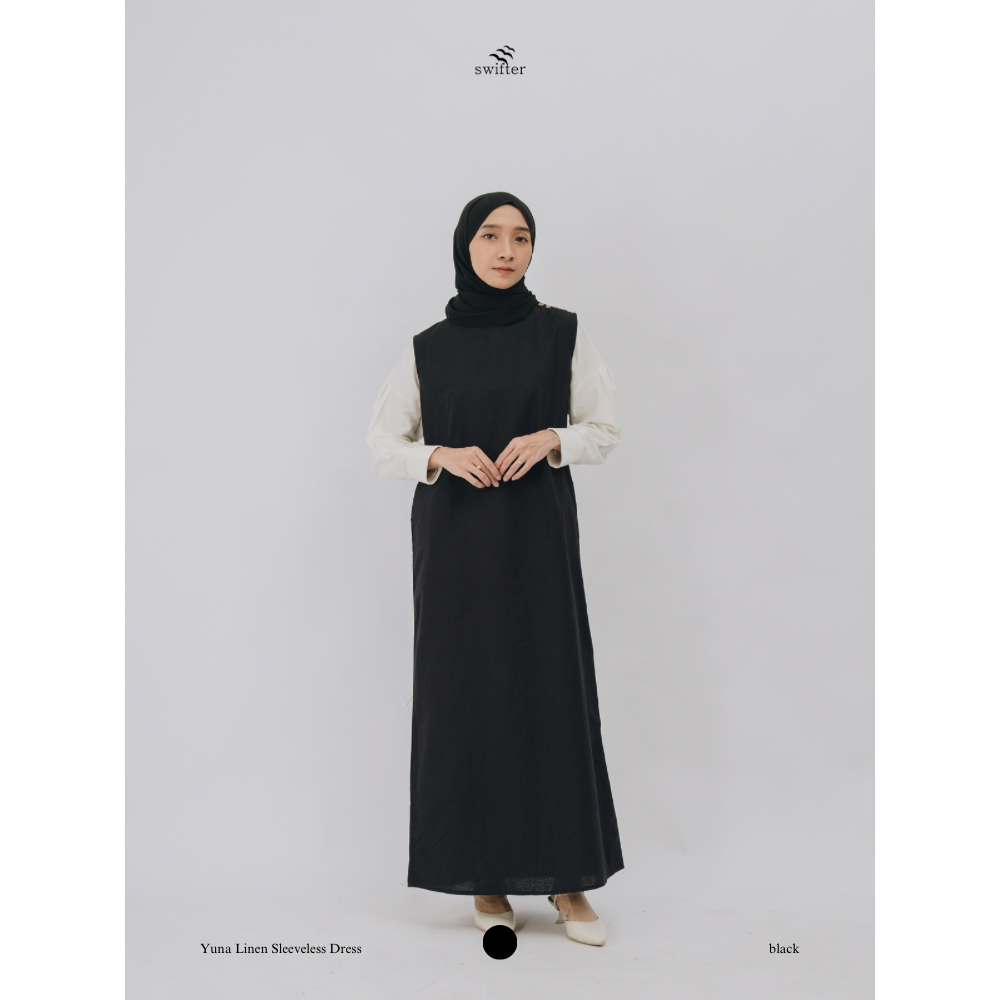 Swifter - Yuna Sleeveless Linen Dress / Dress Linen Wanita Lurus Tanpa Lengan