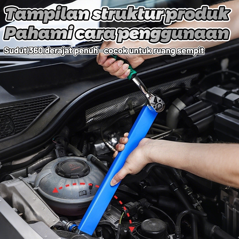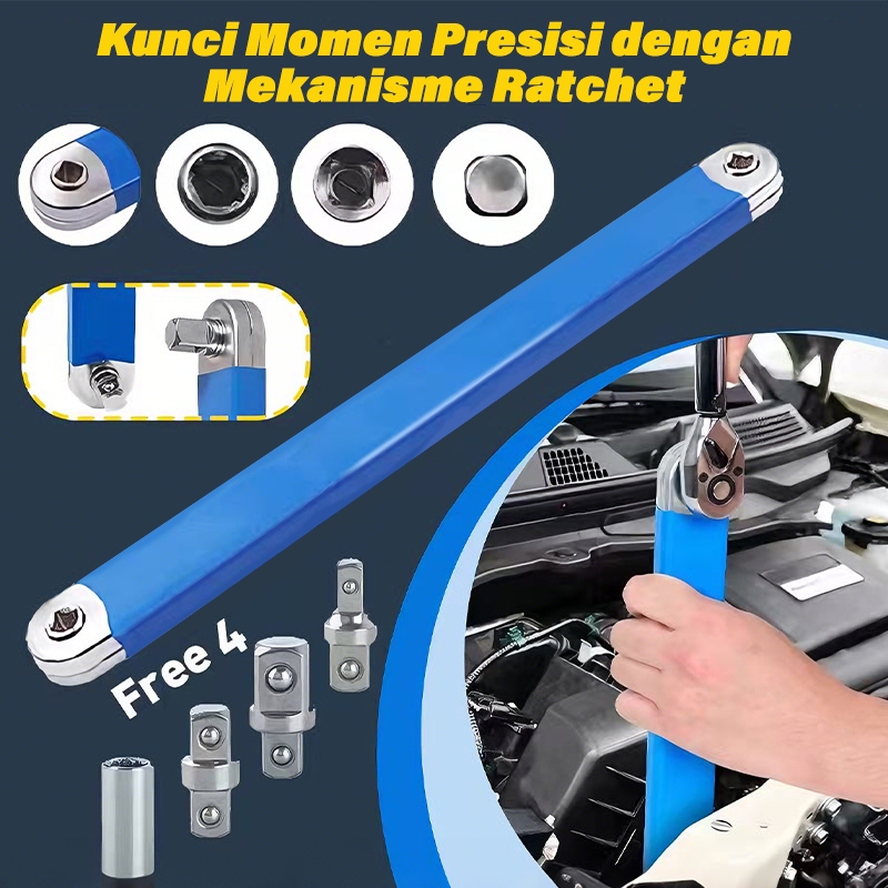 Car Offset Extension Wrench Ratchet Torque Spanner with 4 Adapters, High Carbon Steel Multi-Functional Hand Tool 1/2" 1/4" 3/8" Auto Replacement Parts untuk Bengkel Mobil