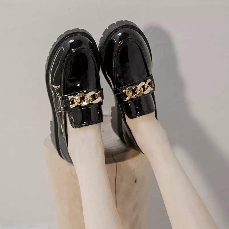 Sepatu Wanita Docmart Loafers / Sepatu Rantai Gold JESSY 09