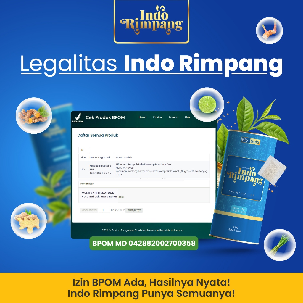 Indo Rimpang Premium Tea - Teh Rempah Minuman Penurun Berat Badan 5x - Teh Detox Cepat Alami BPOM