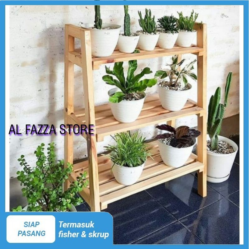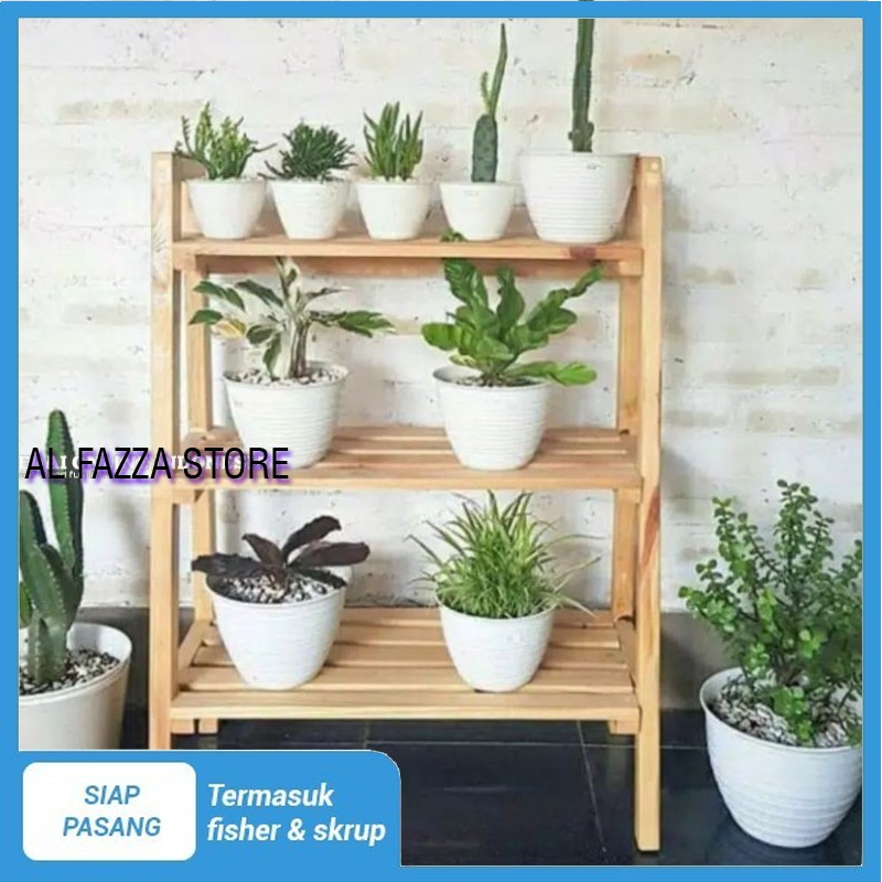 Rak susun 3 kayu tingkat / Rak susun bunga / Rak serbaguna / Rak minimalis / Rak tanaman