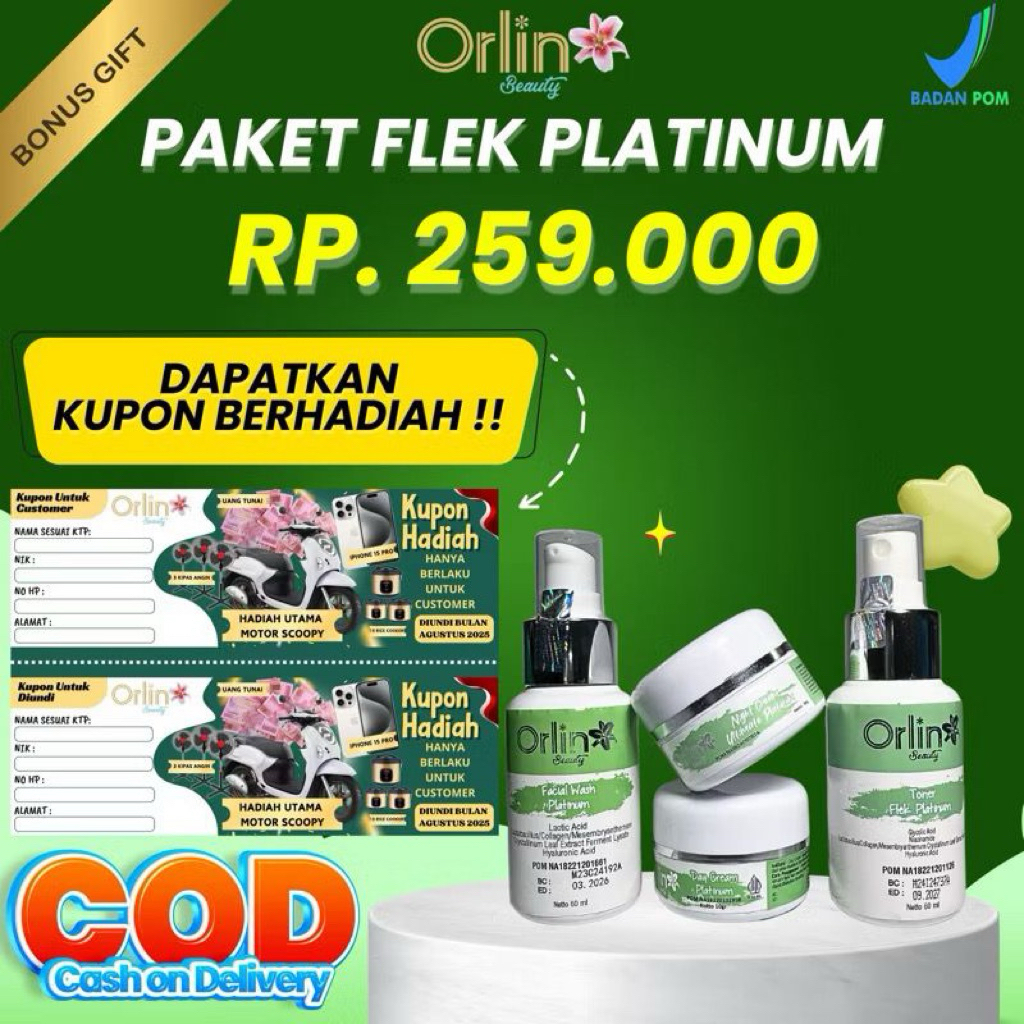 Orlin Beauty Skincare Paket Flek Platinum Mencerahkan Wajah Mengencangkan Kulit Elastis Memudarkan Flek Hitam Menahun Ampuh BPOM