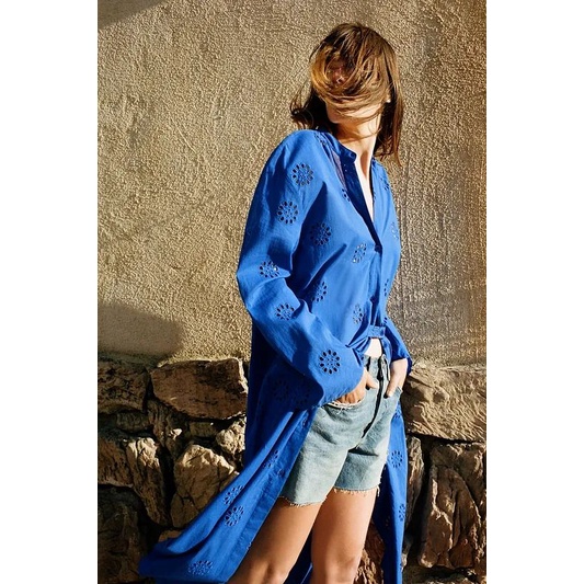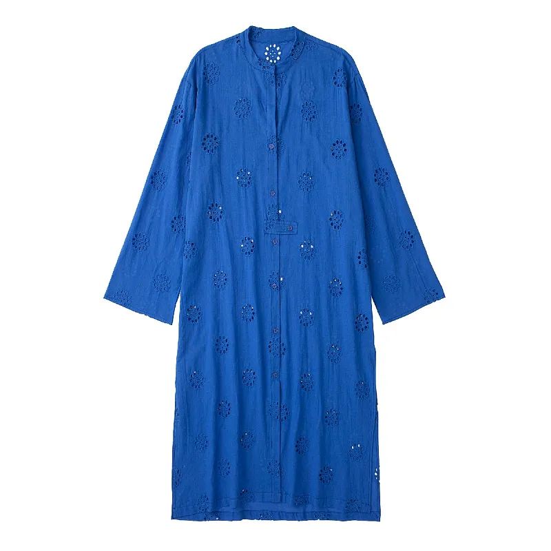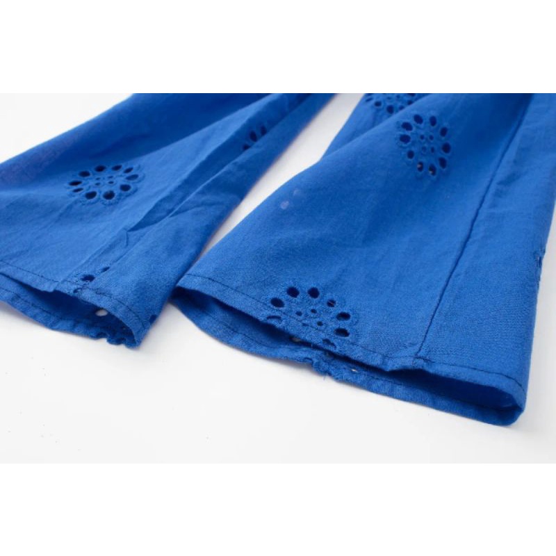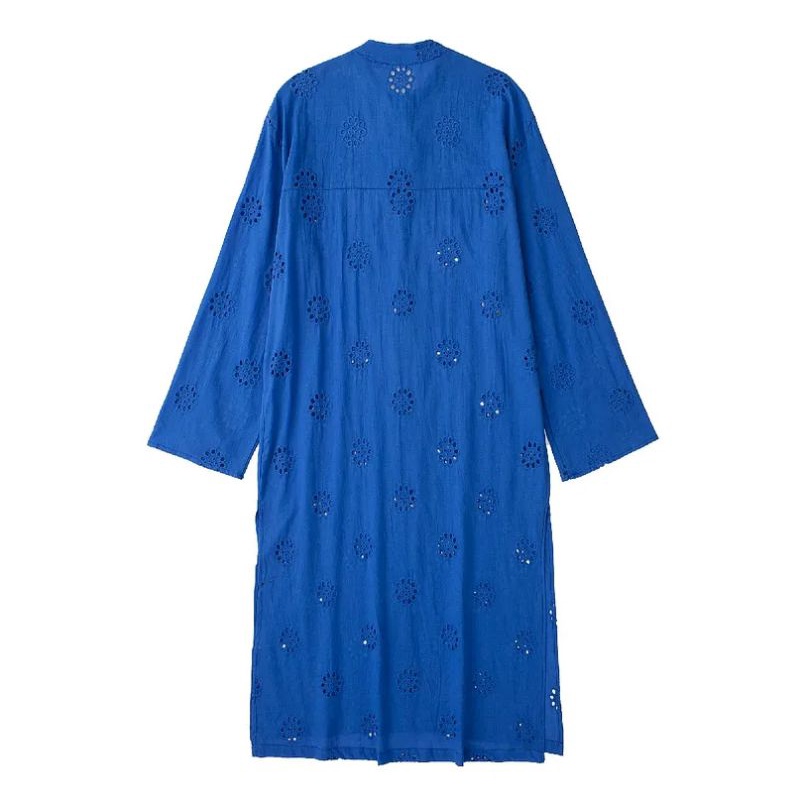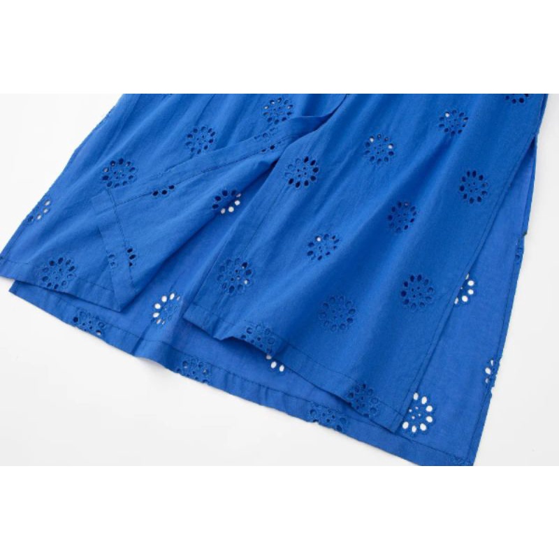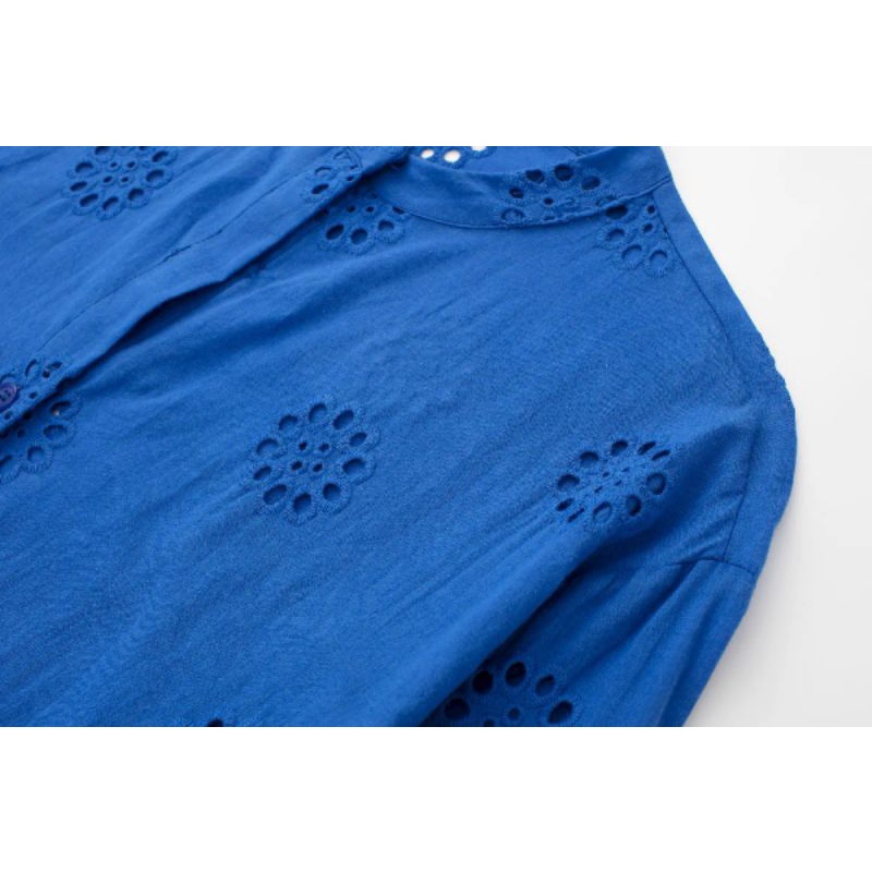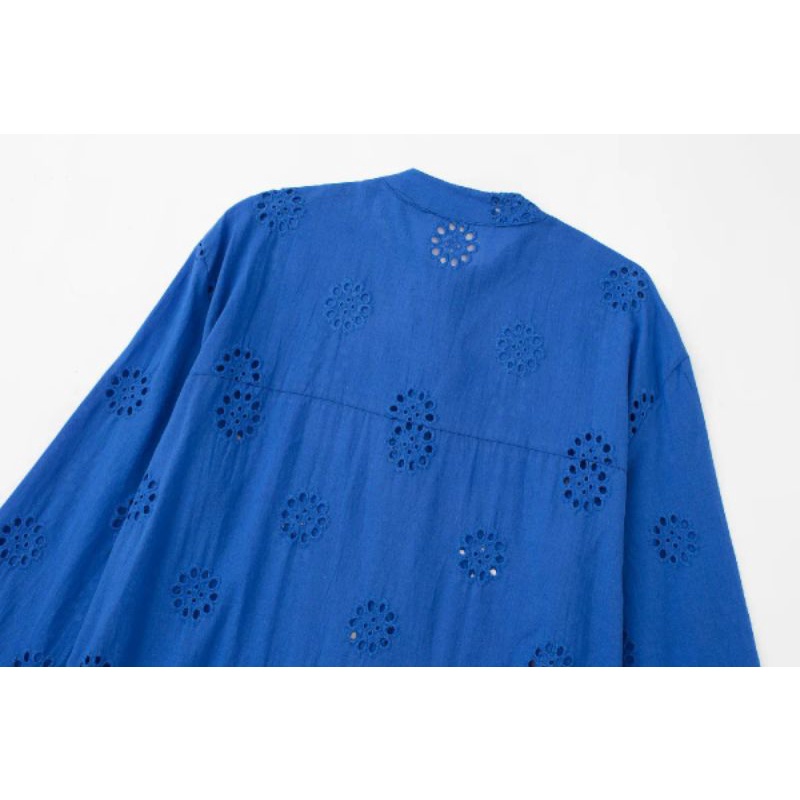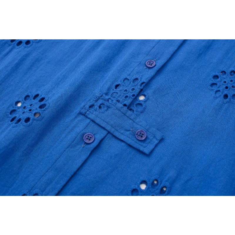 dress blue electric embroidery casual import elektrik biru bordir Korean style