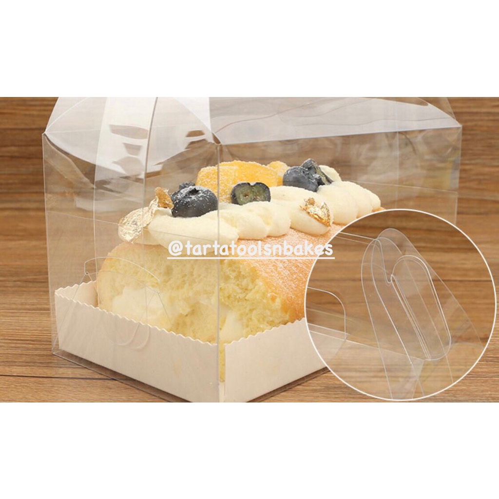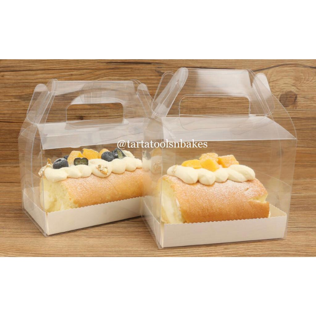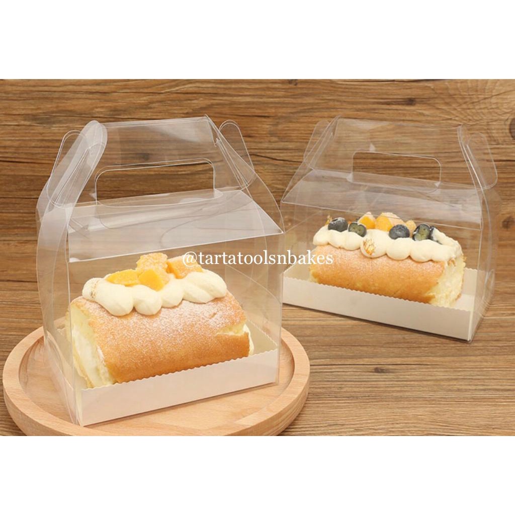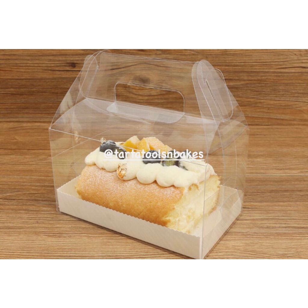 Kotak Mika Kue Roll Cake Bolu Gulung | Gagang | Tenteng | 16.3x9.3x9CM