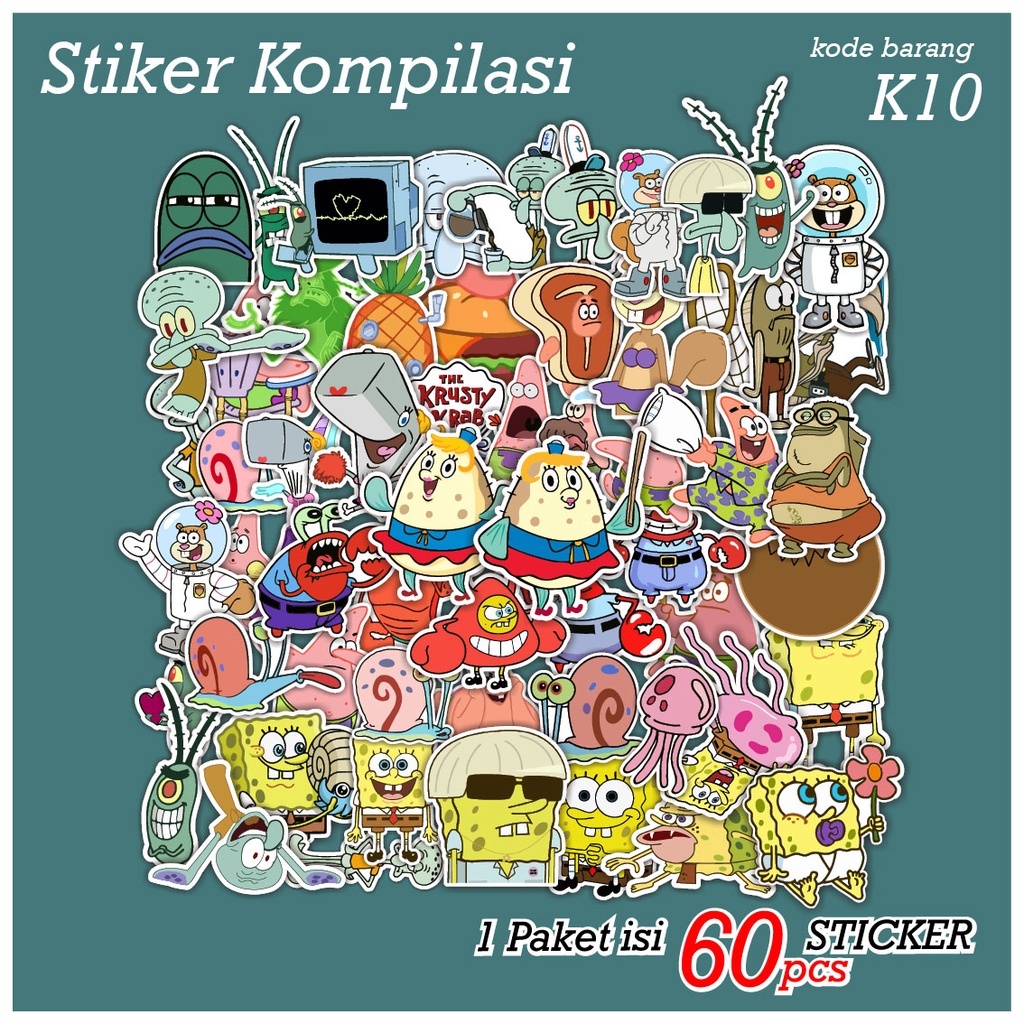 60 PCS STICKER KARTUN SPONGEBOB PATRICK SQUIDWARD SANDY TUAN KRABS GARY PEARL MR. PUFF LUCU AESTHETIC - STIKER ANTI AIR UNTUK CASE TUMBLER LAPTOP KOPER HP SCRAPBOOK - K10