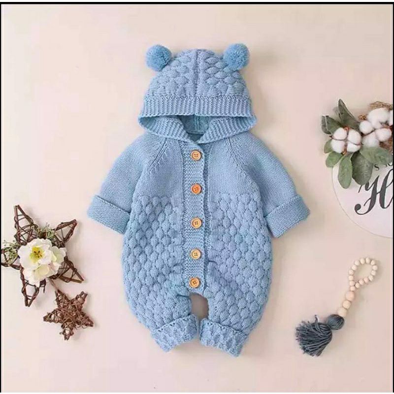 Jumpsuit bayi 0-12 bulan unisex rajut halus tebal/jumper bayi laki-laki dan perempuan terlaris