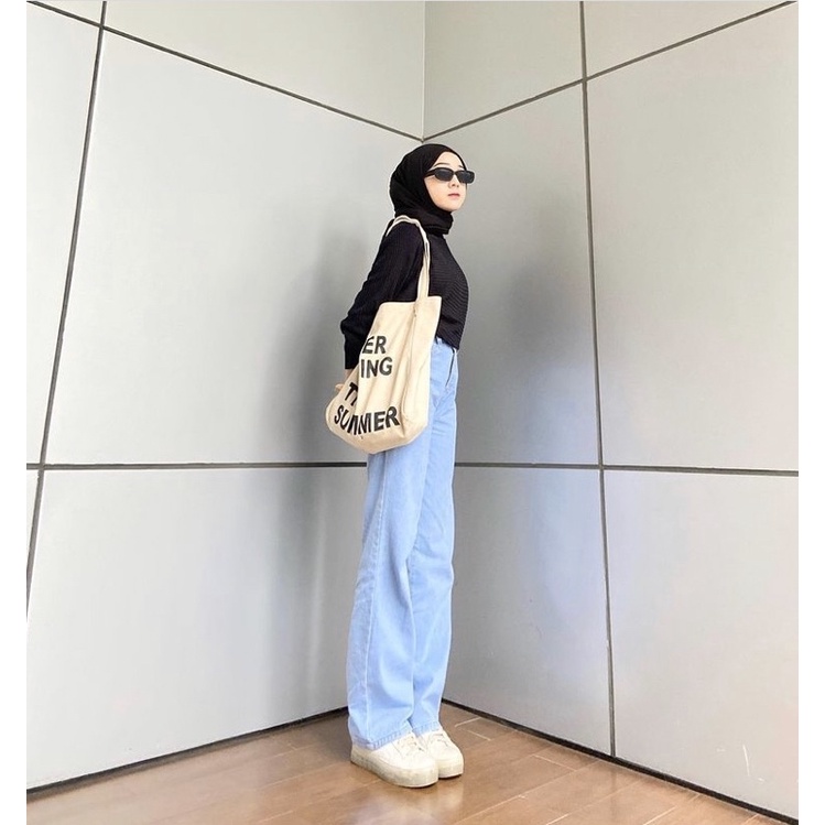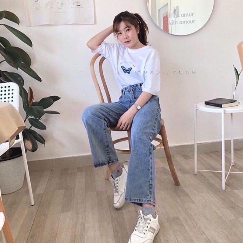 Highwaist Kulot Jeans Wanita Loose