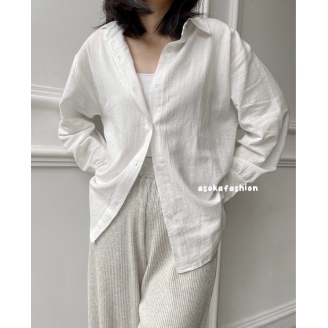 KEMEJA OVERSIZE LINEN WANITA - Linen shirt -Atasan Wanita lengan Panjang 990