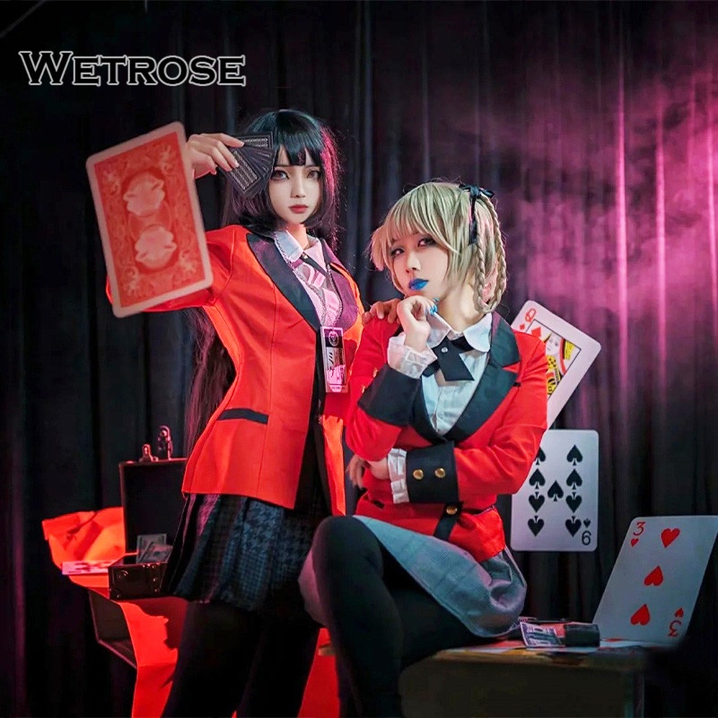 [Wetrose] Ready Stock Kakegurui Cosplay Yumeko Jabami Kirai Saotome Mary Meari Runa Amine Costume Kostum Seifuku Baju Clothes Full Set, Wig