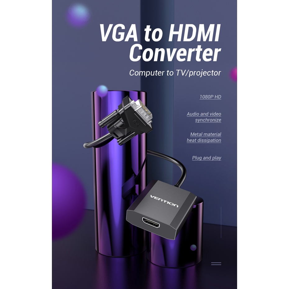 MALLIT VENTION Adaptor Converter VGA to HDMI w/ Audio Micro USB Power ACE ACN