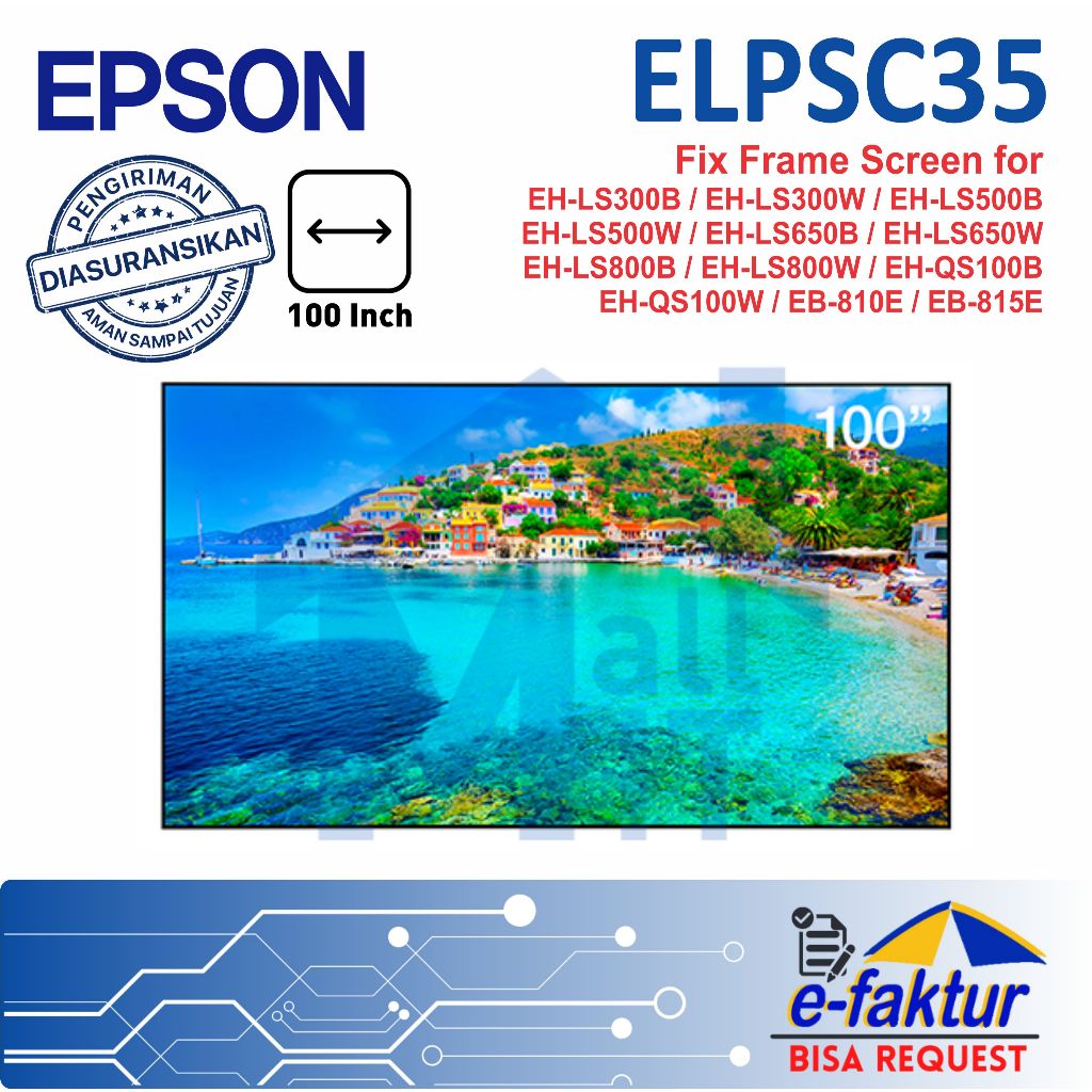 MALLIT EPSON Layar Fix Frame ALR Screen Laser Home Theatre Epson ELPSC35 ELPSC36 100" 120"
