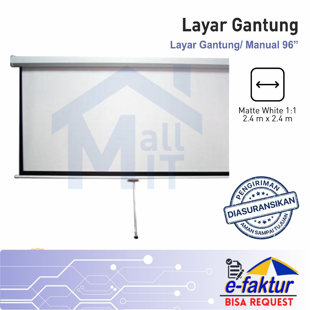 MALLIT ANYLINX PIXEL Layar Tripod Tripot Gantung Layar Proyektor 96" x 96" 2.4m x 2.4m