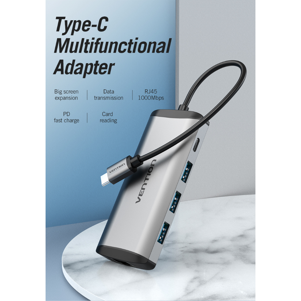 MALLIT VENTION Hub USB type C to HDMI Multiport TYPEC USB 3.0 LAN SD CARD CND