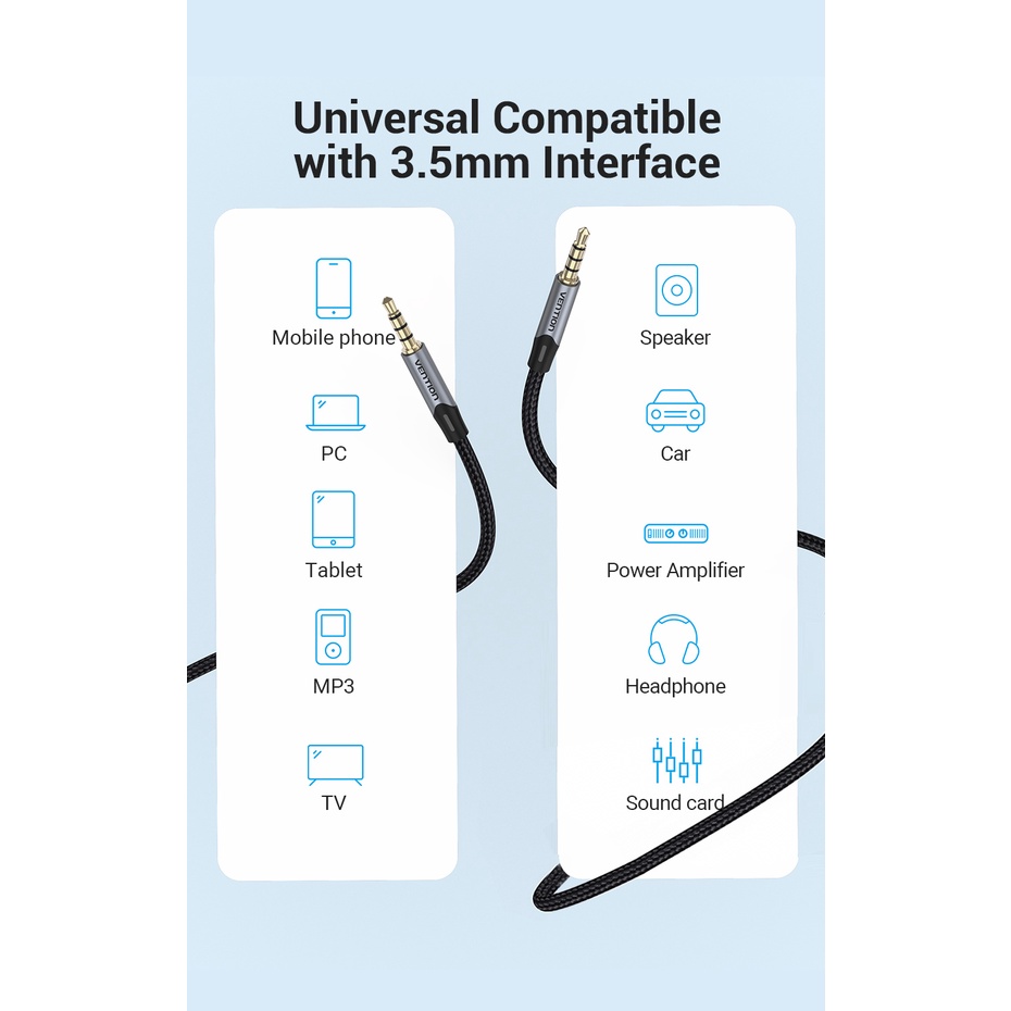 MALLIT Vention Kabel Audio Jack Aux 3.5mm Stereo Hi-Fi Braided Headphone BAQ