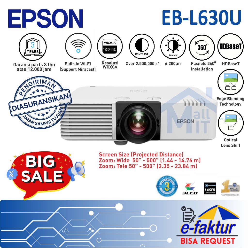 MALLIT EPSON Proyektor Laser EPSON EB-L630U EB L630U L630 U WUXGA 6200 Lumens Resmi