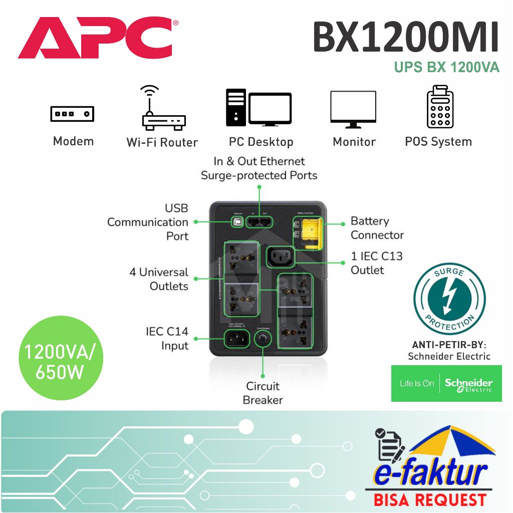 MALLIT APC UPS APC BVX1200 BX1200 BVG1200 1200VA 650W BVX-1200 BX-1200 BVG-1200 BVX1200LI-MS BX1200MI-MS BVG1200I-GR AVR Surge Protection Garansi Resmi Medan