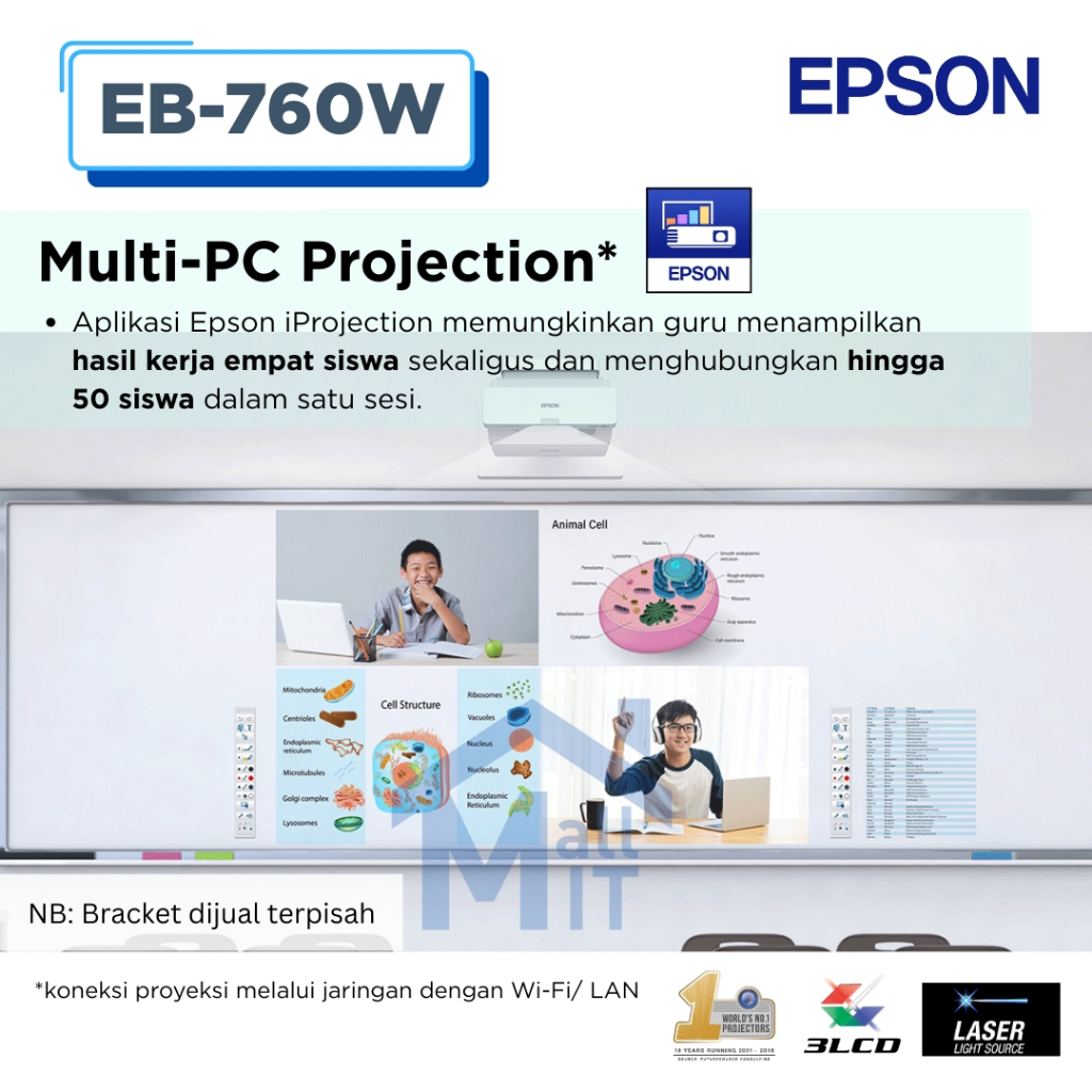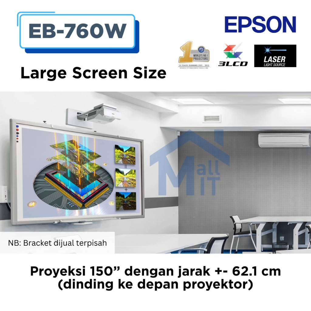 MALLIT EPSON Proyektor EPSON Laser EB-760W EB760W EB 760W WXGA Ultra Short Throw Pengganti EB 725W Resmi Medan