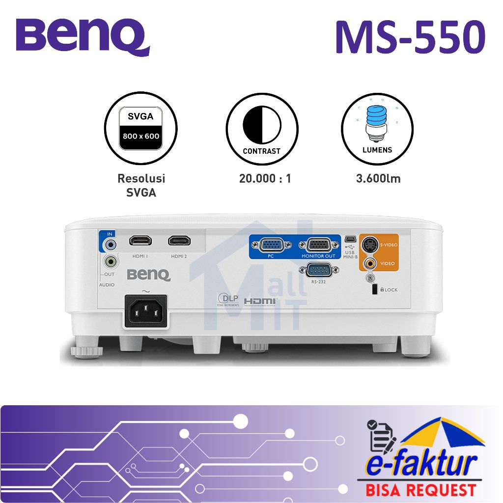 MALLIT BENQ Proyektor BENQ MS-550 MS 550 BENQ MS550 Proyektor DLP Garansi Resmi Medan