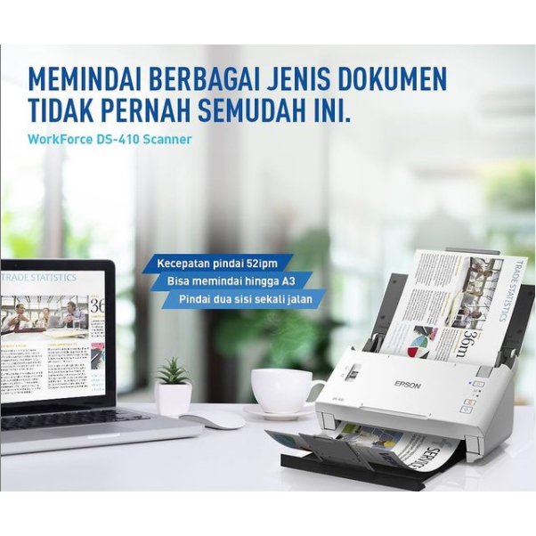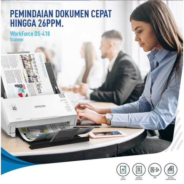 MALLIT EPSON Scanner EPSON Workforce DS-410 DS410 Workforce A3 STITCH ADF USB Garansi Resmi Medan
