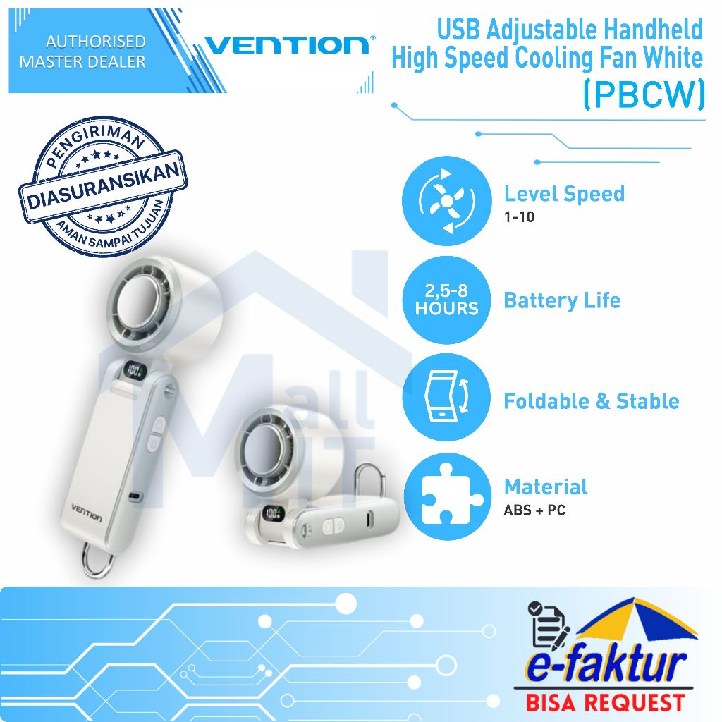 MALLIT Vention Kipas Lipat Mini Portable 13000RPM Cooling Fan Super Dingin 3000mAh Stepless Speed Kipas Angin Genggam LED Display PBC PBD