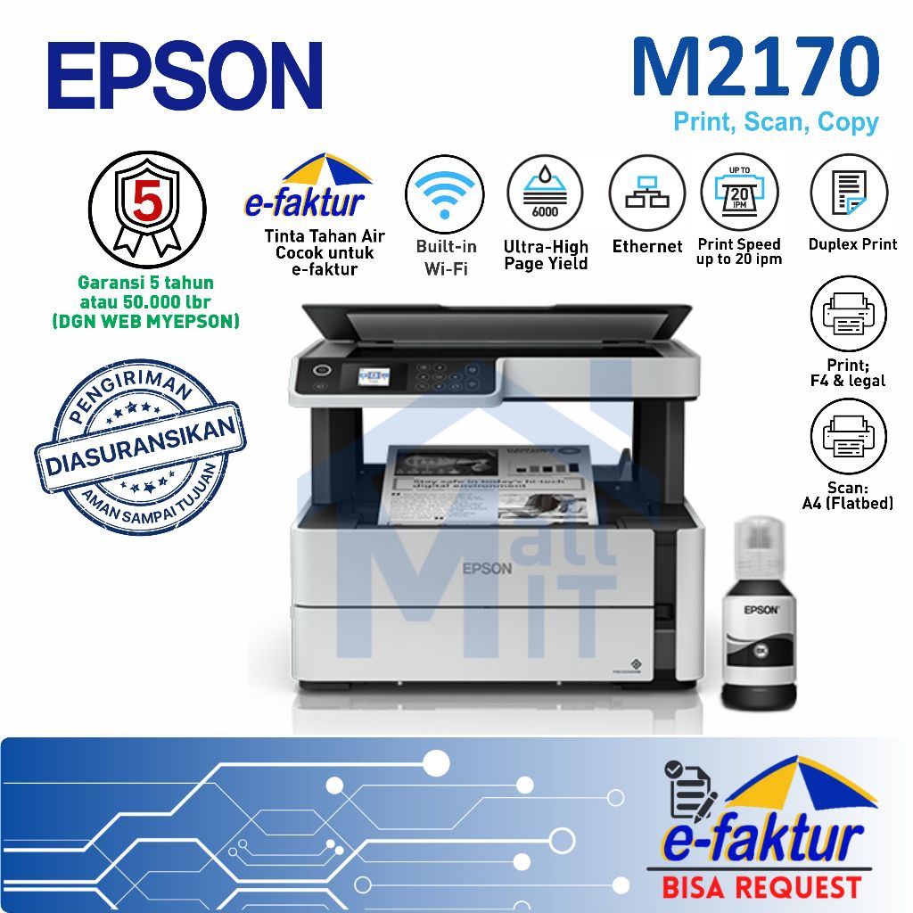 MALLIT EPSON Printer Epson M2170 M-2170 M 2170 Inkjet Monochrome Pigment WIFI Resmi