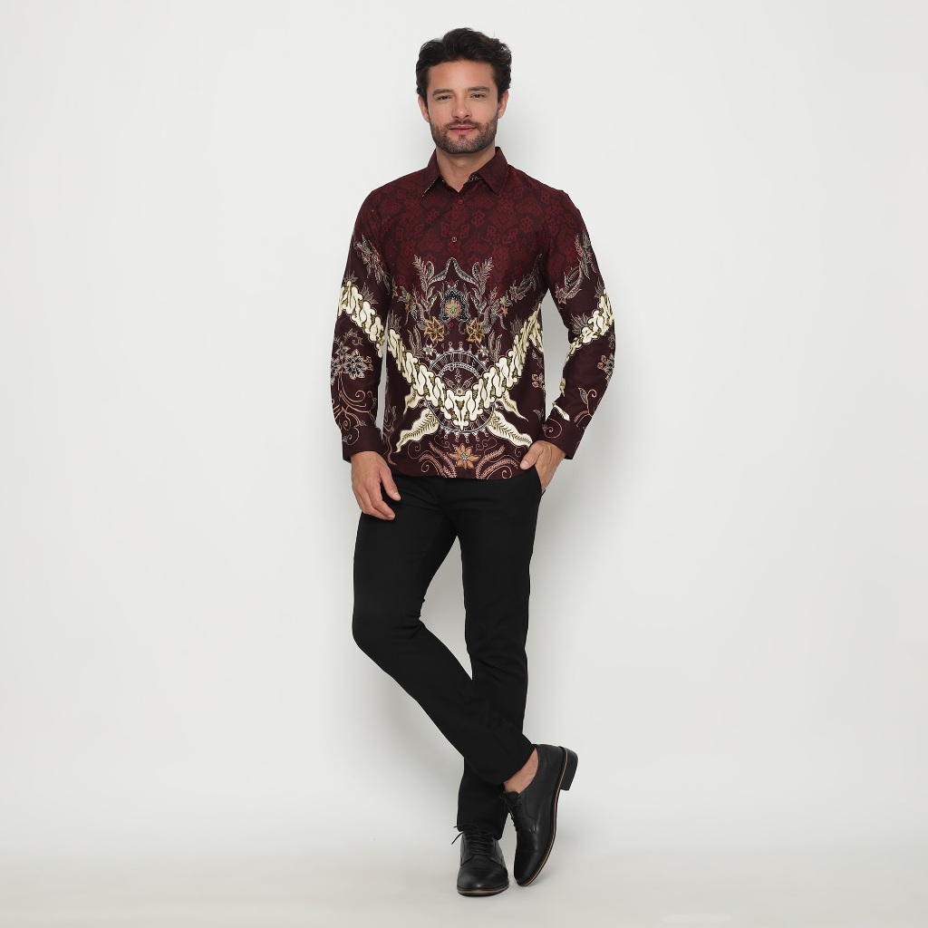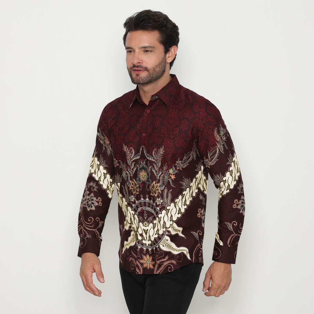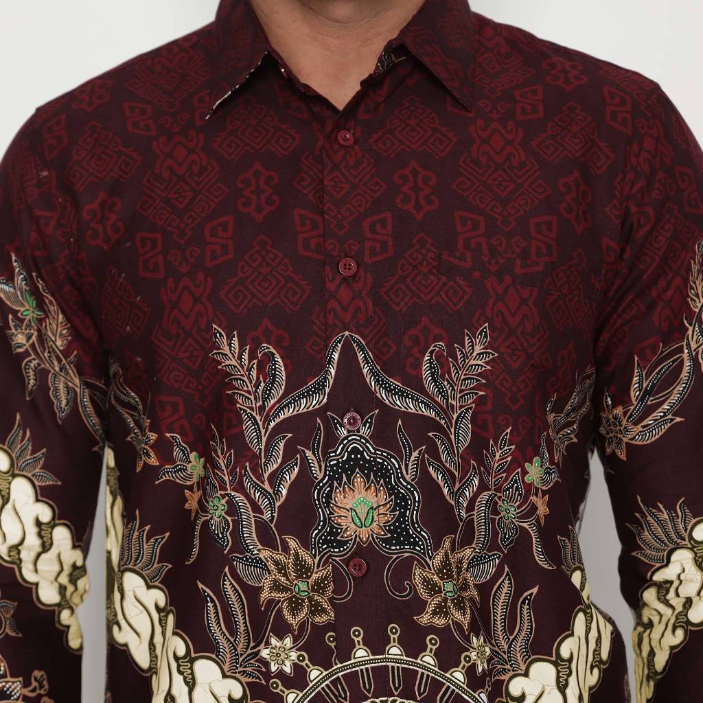 (BUNDLING) Platini Kemeja Batik Pria Lengan Panjang Katun Maroon 36051