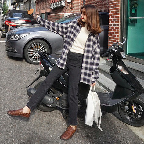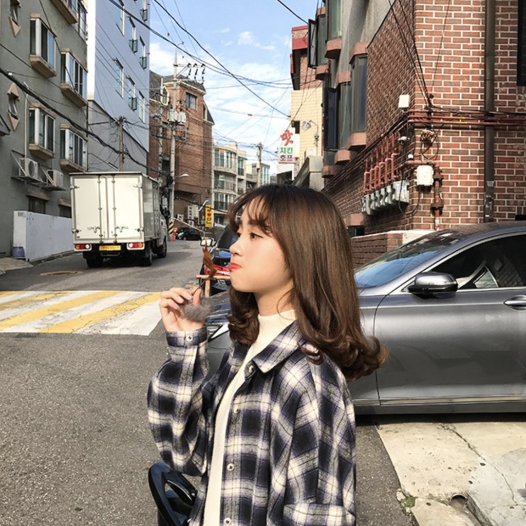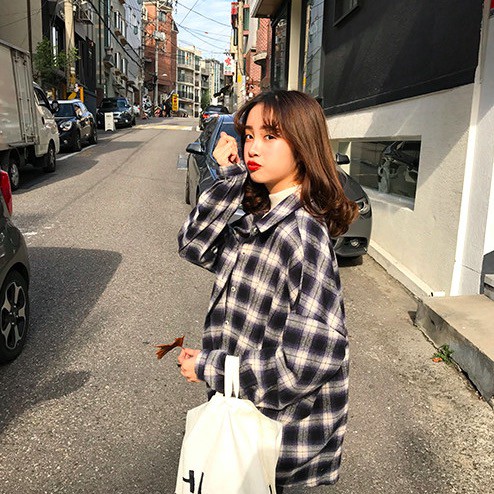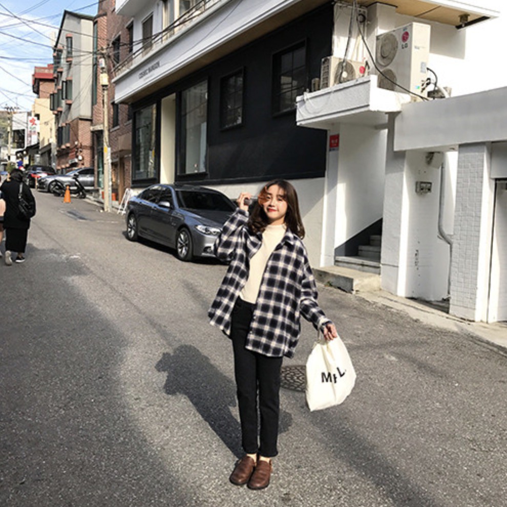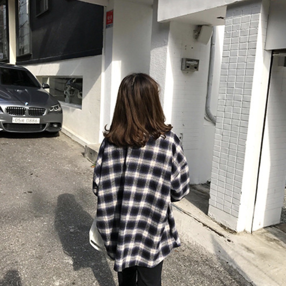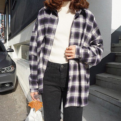 Kemeja Kotak-kotak Lengan Panjang Kasual Longgar Untuk Wanita