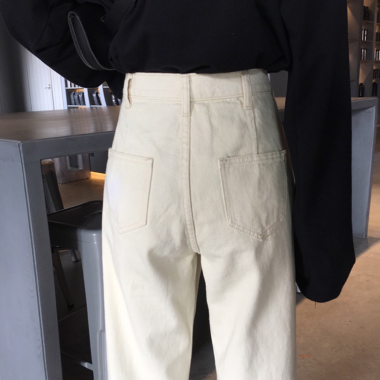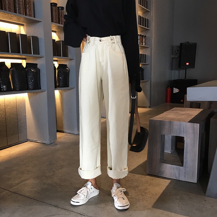 Celana Panjang Model Longgar Lebar Gaya Korea Retro Bahan Jeans untuk Wanita