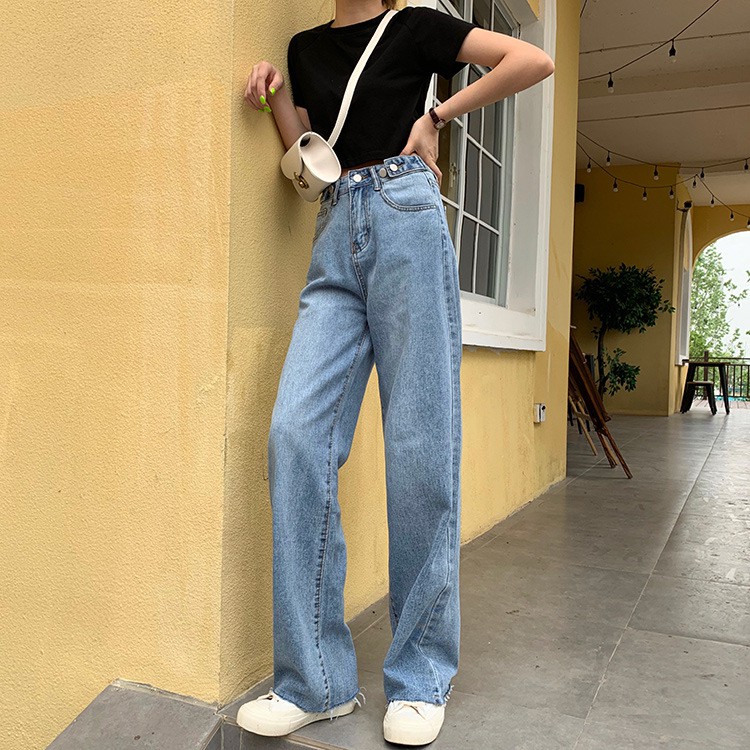 Korean New Women's Loose High Waist Wide Leg Jeans