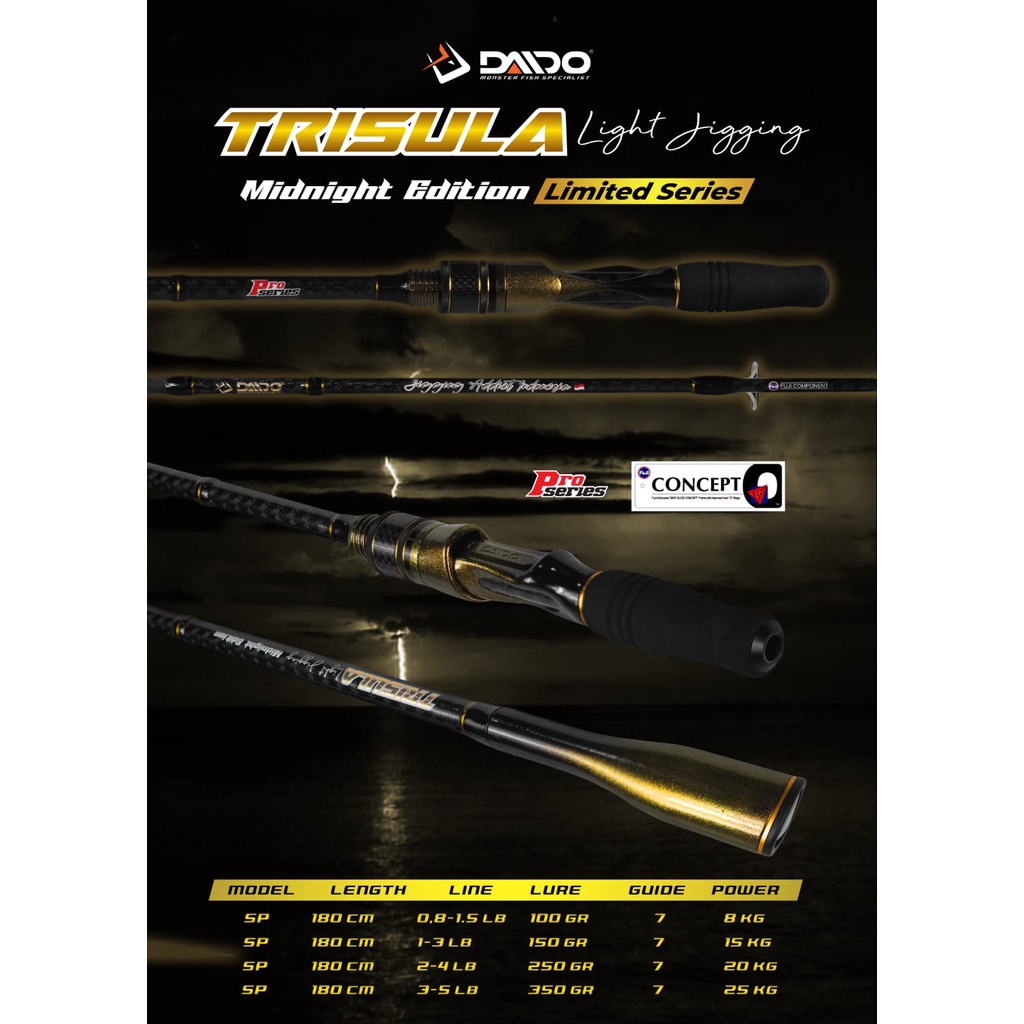 Rod Joran Pancing Daido Trisula Light Jigging-Midnight Edition Pro Series 602 PE 1-3 PE 2-4