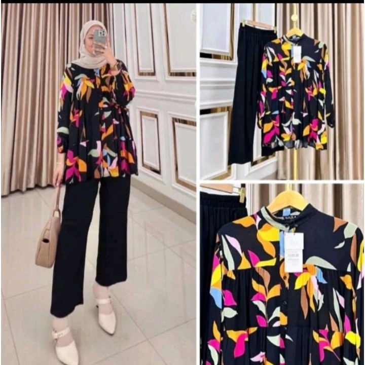 Stlan Terbaru 2025 Setcel Wanita 1Set Celana Satu Set Bju Hari Raya Setelan Dewasa Stelan Baju Stln Atasan Bawahan Bju Panjang 1 Stel Perempuan Kekinian Import Premium Oneset Lebaran Remaja Prmpuan Baju Tunik Ibuibu One Set Malika Salur Setelan Wanita Dew