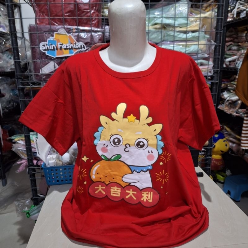Kaos Lengan Pendek Wanita Edisi Imlek 2024 Shio Naga Dragon Banyak Size