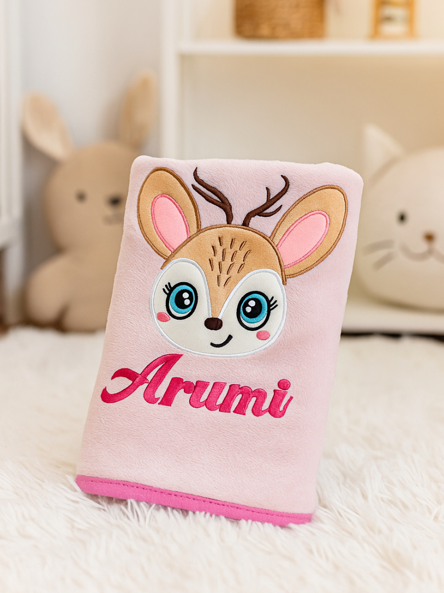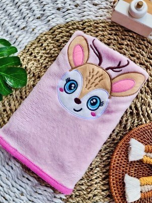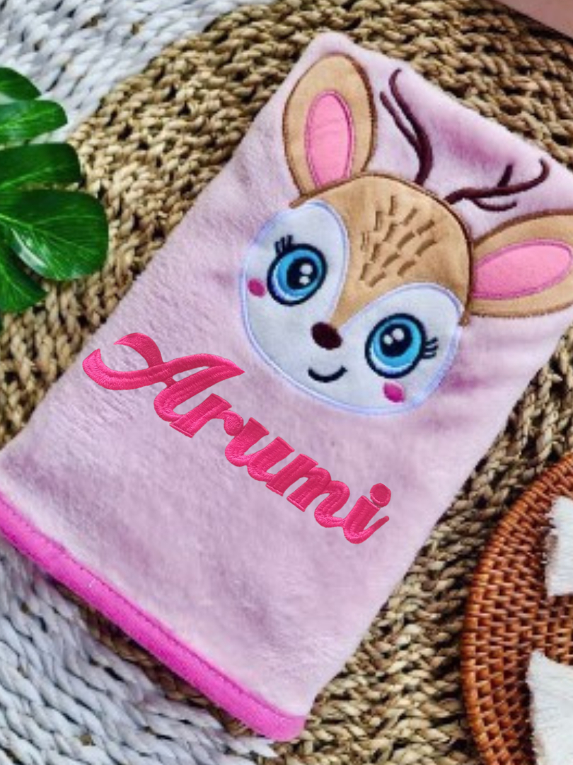 [ NO COD ] Custom Bordir Nama Bayi Handuk Pink Deer Karakter Hewan Lucu Lembut