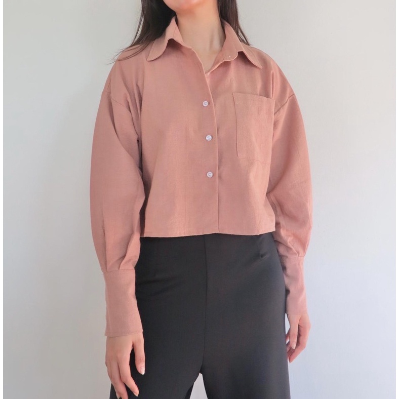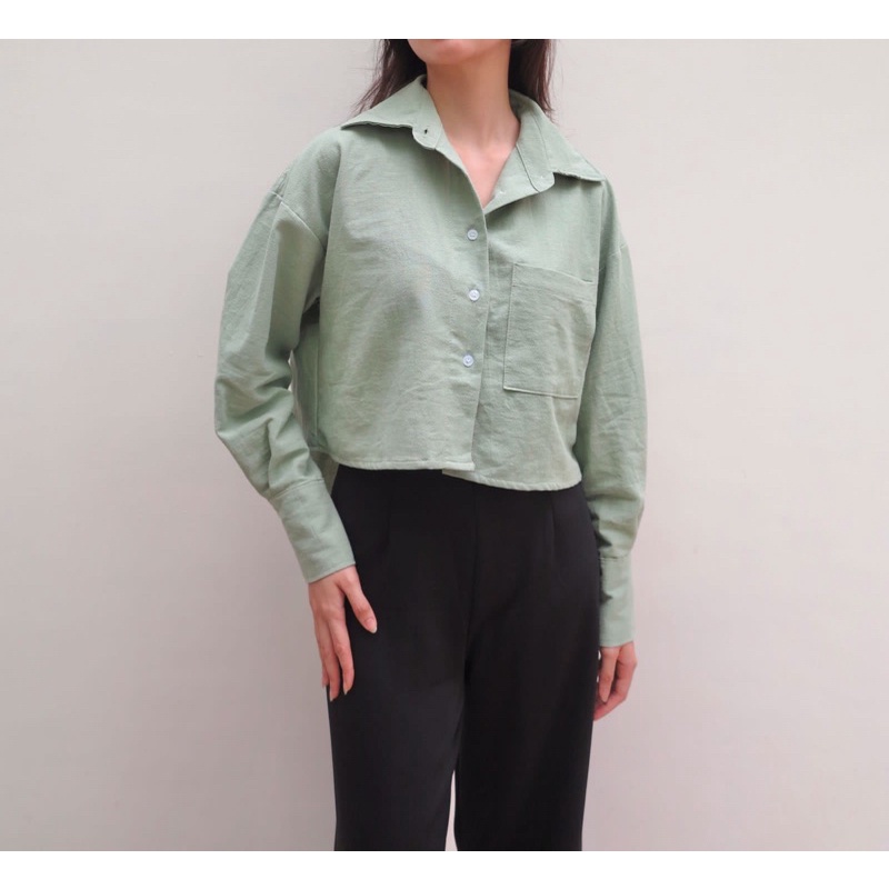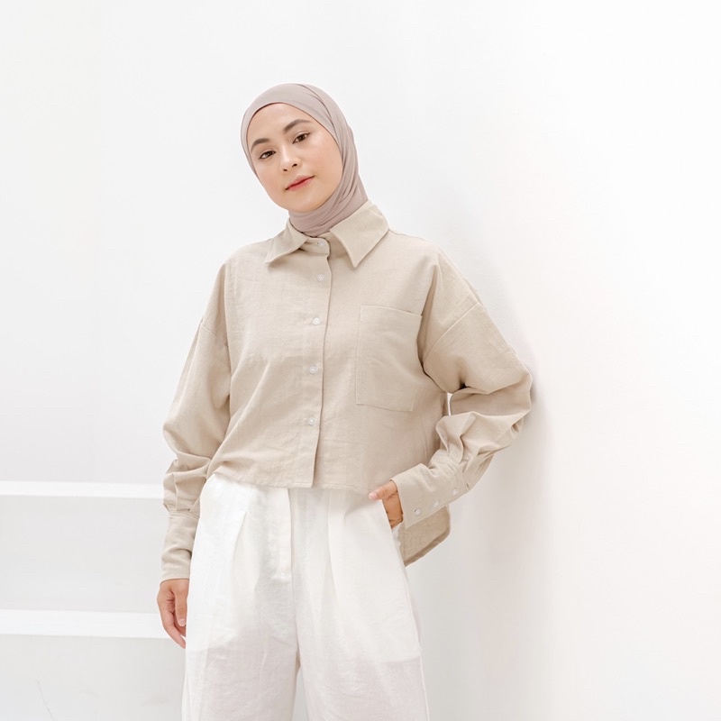 [𝗞𝗲𝗹𝗮𝗻𝗮] Lowi Crop Shirt | Kemeja Oversize Wanita bahan Cotton Linen | Kemeja Crop Oversize