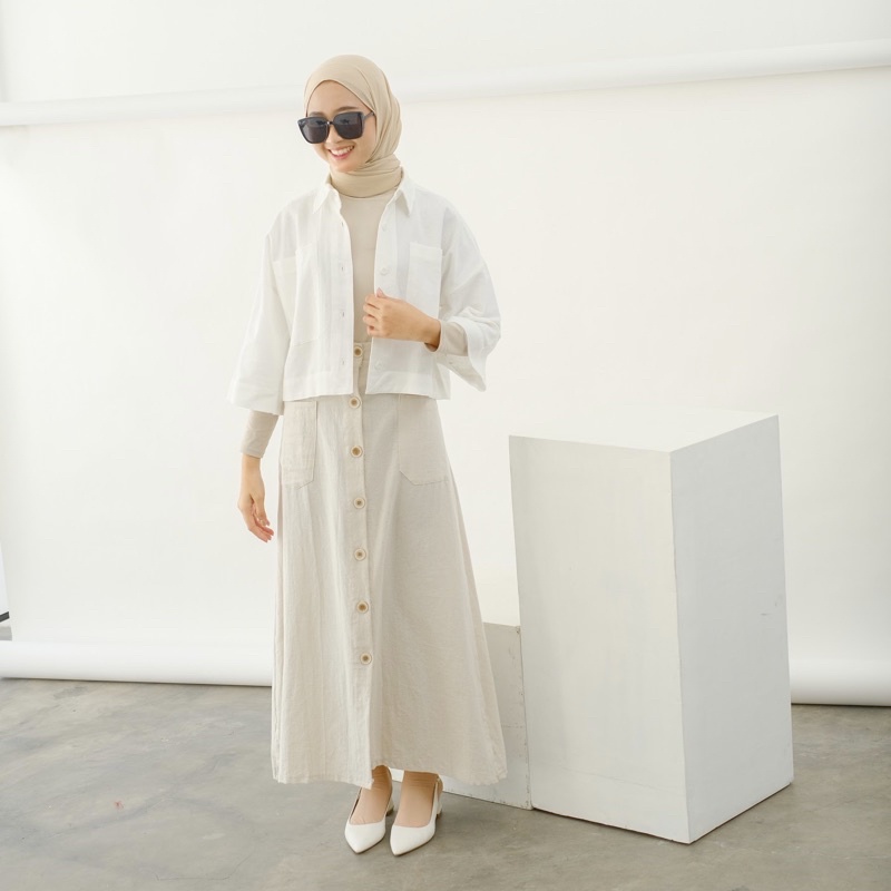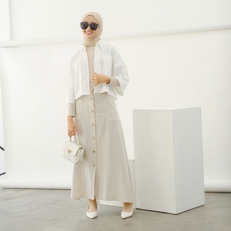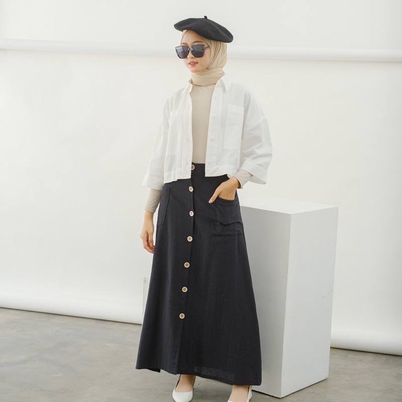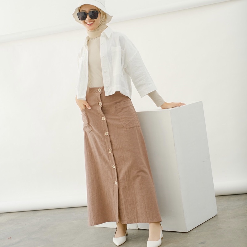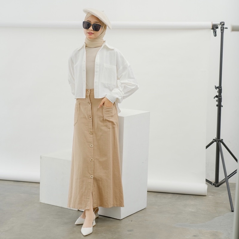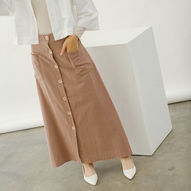 [𝗞𝗲𝗹𝗮𝗻𝗮] Hyujin Linen Skirt | Linen Skirt Wanita | Rok Linen dengan Kancing