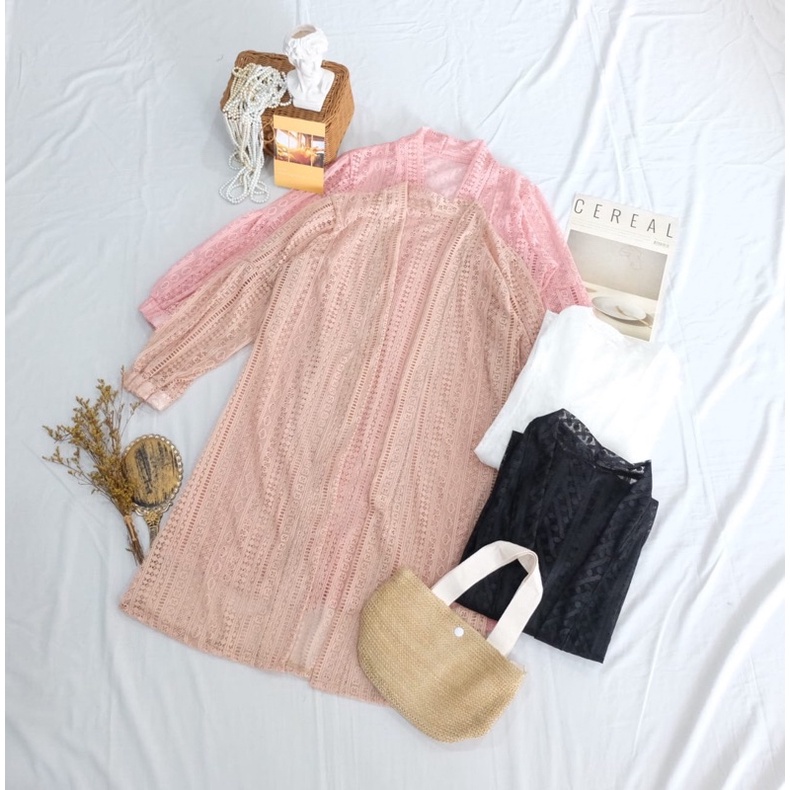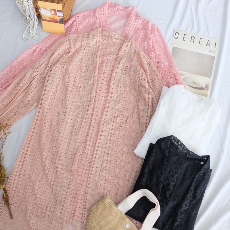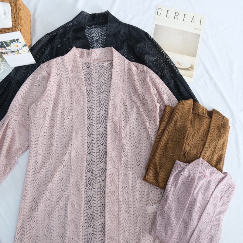 [𝗞𝗲𝗹𝗮𝗻𝗮] Raya Lace Outer | Outer Lace Cardigan | Cardigan Outer Brokat | Baju Lace Cardigan Pantai