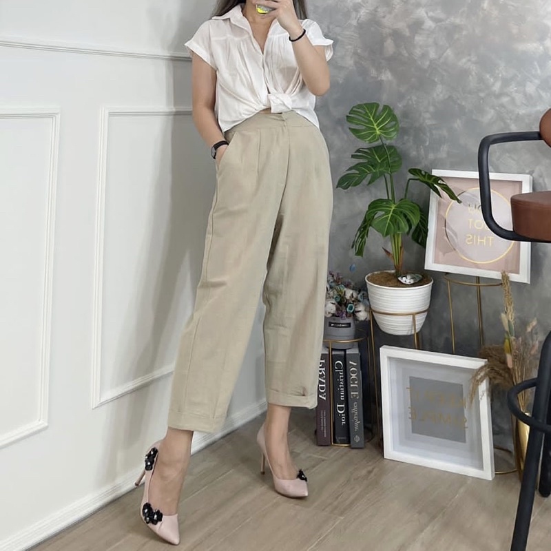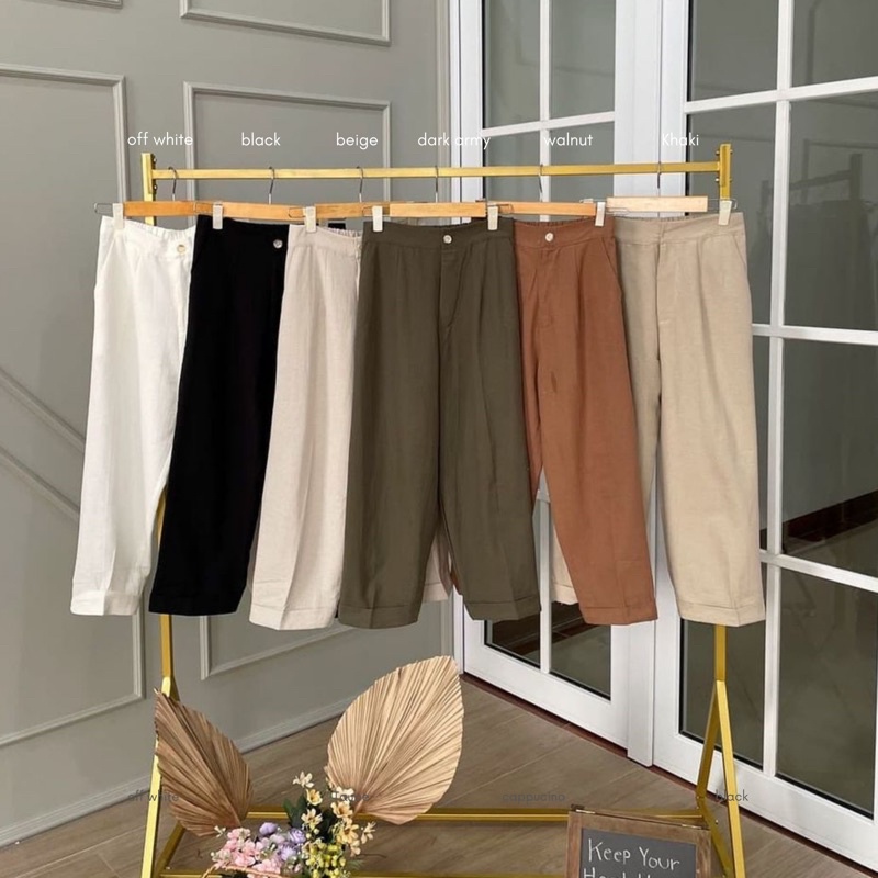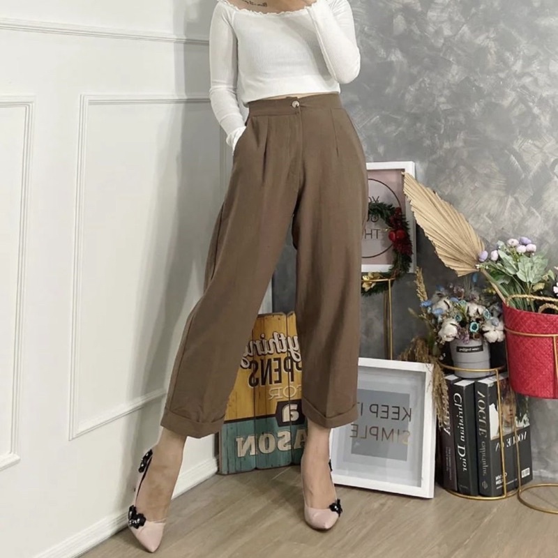 Aubrey Pants | Celana Basic Linen Wanita | Baggy Linen Pants