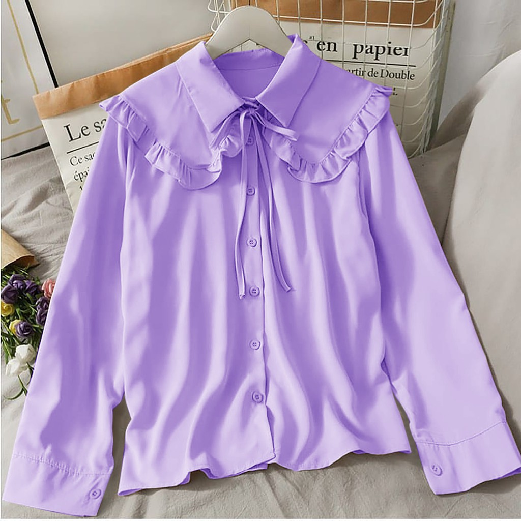 COD - Jeni Top Atasan Blouse Kemeja Kerah Sailor Matt Wollycrepe Fashion Remaja Wanita Muslim Termurah Terlaris