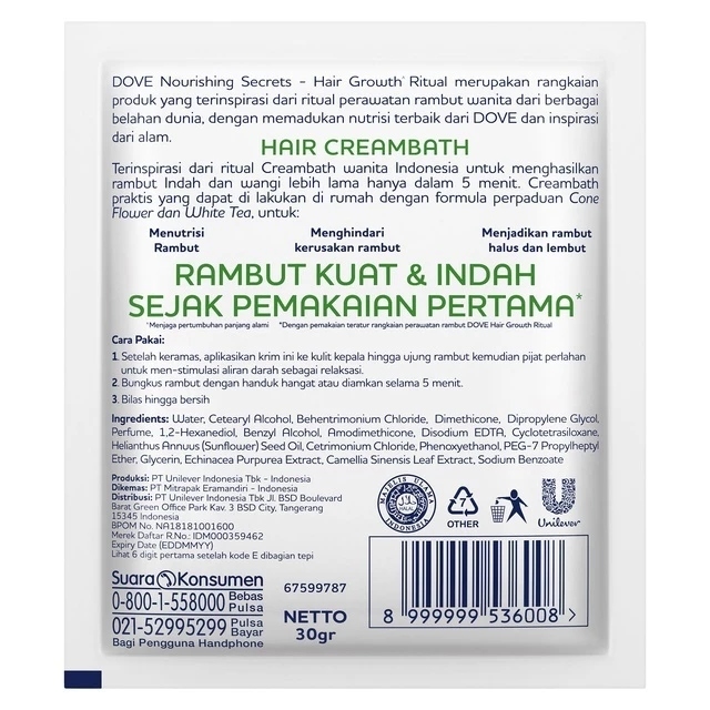 Dove Hair Growth RItual Creambath Sachet 30gr | gdlb01