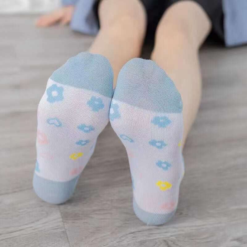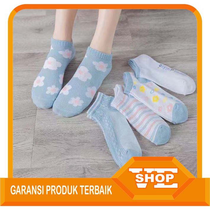 Veshop KK020 Kaos Kaki Wanita Motif Bunga Biru Fashion Women Sock