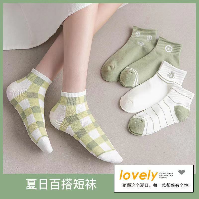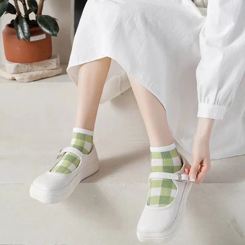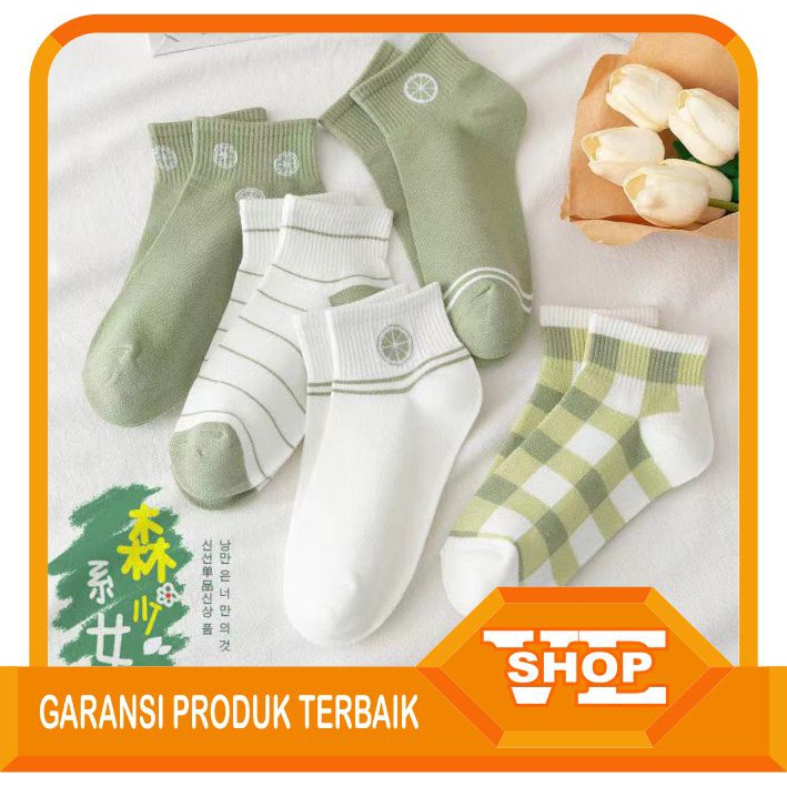 Veshop KK024 Kaos Kaki Wanita Motif Lemon Hijau Lumut Kotak Fashion