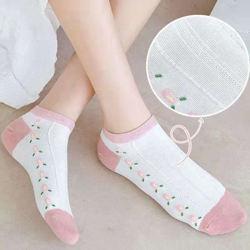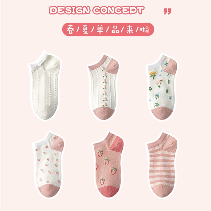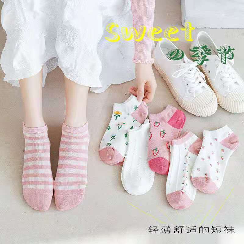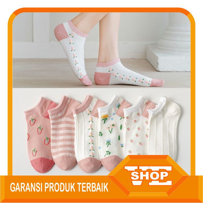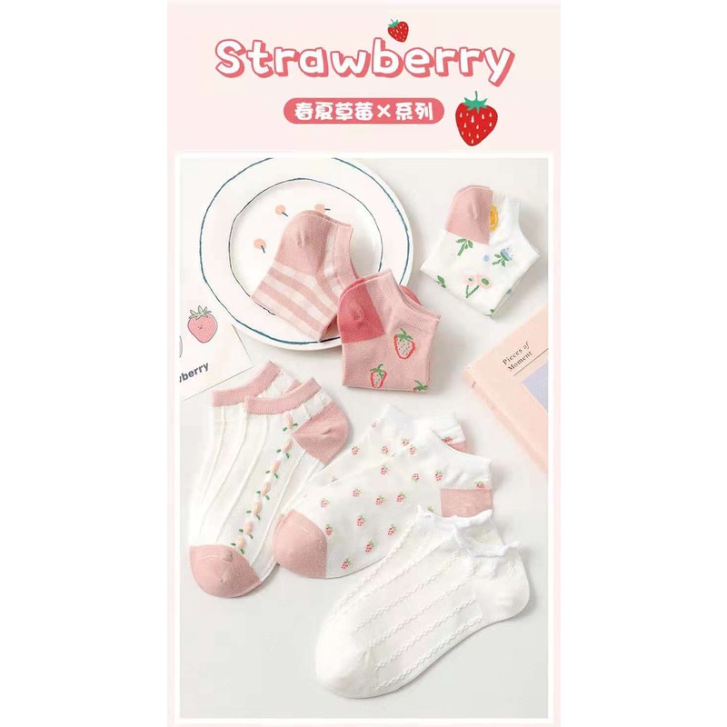 ✌️ Veshop ✌️ KK014 Kaos Kaki Wanita Fashion Strawberry Bunga Pendek