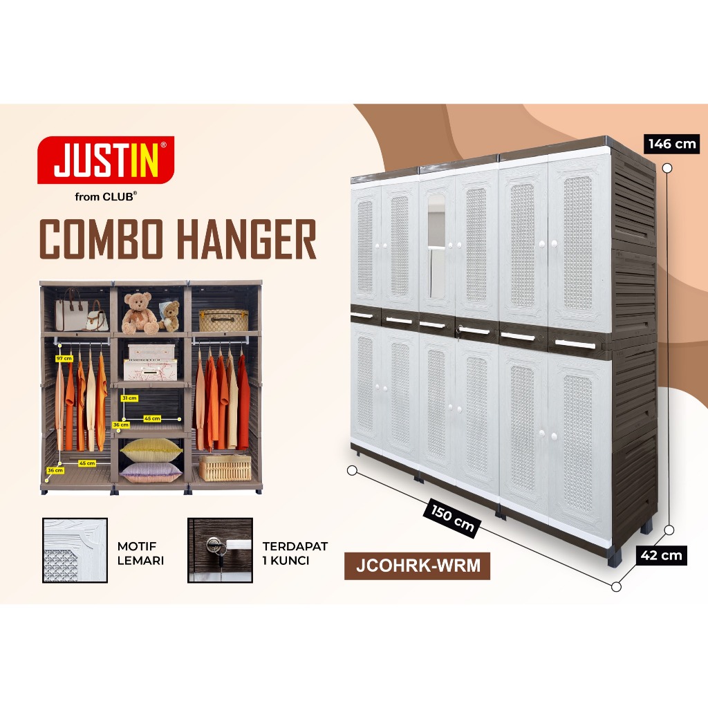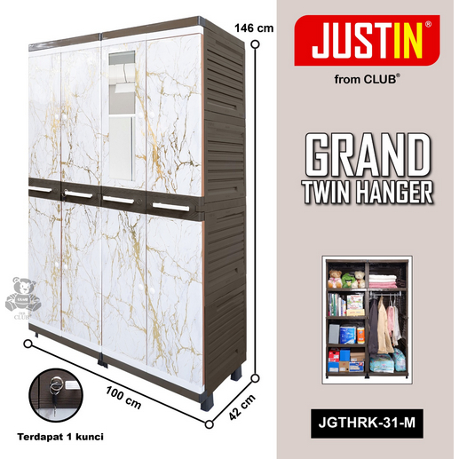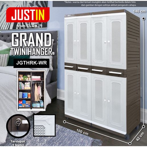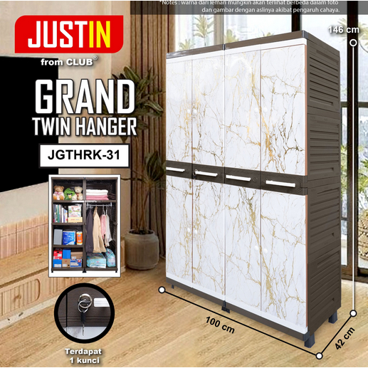 CLUB LEMARI JUMBO BESAR Justin Grand Twin Hanger Kunci Gantung Kaca 4 Pintu MURAH KOKOH