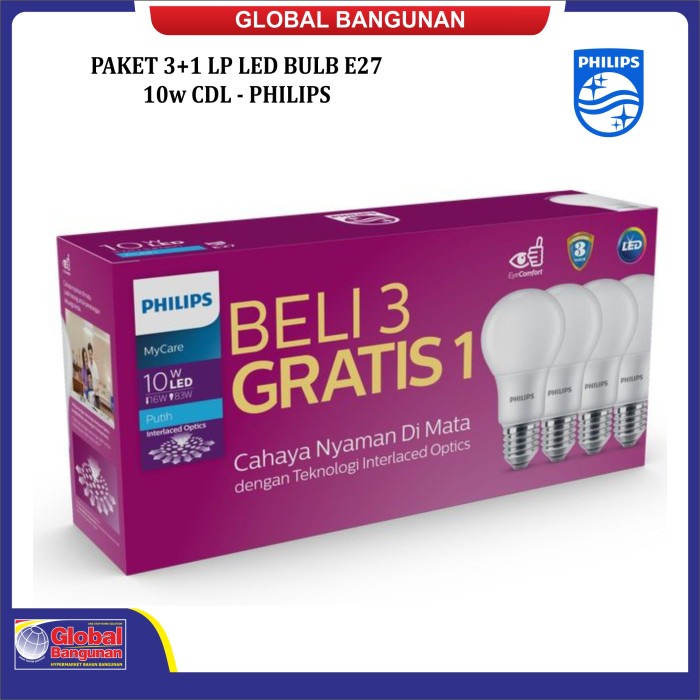 PAKET 3+1 LP LED BULB E27 10w CDL - PHILIPS